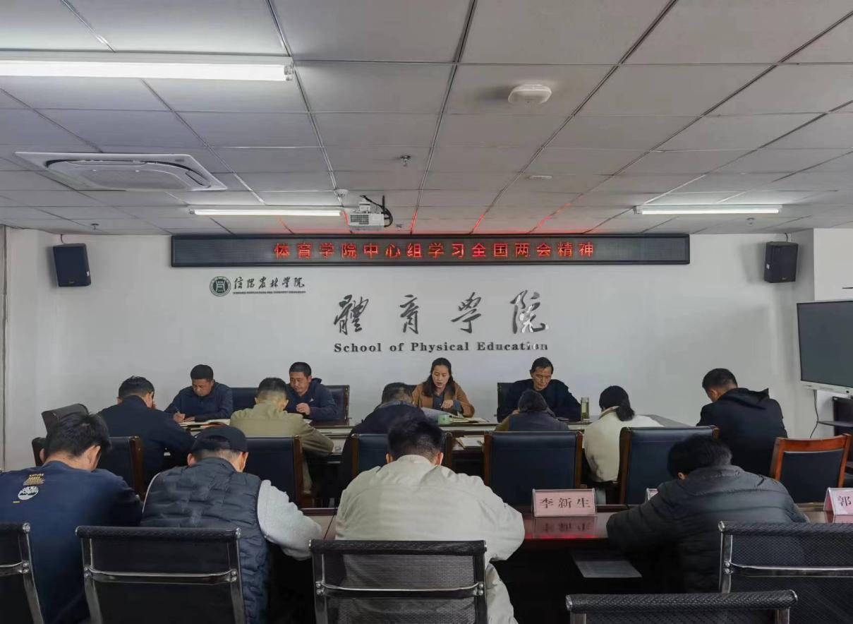 3月19日下午,体育学院在双创南楼602会议室召开全国两会精神专题学习会,全体教职工参加此次学习。会议由院党总支副书记孙莉琴主持。