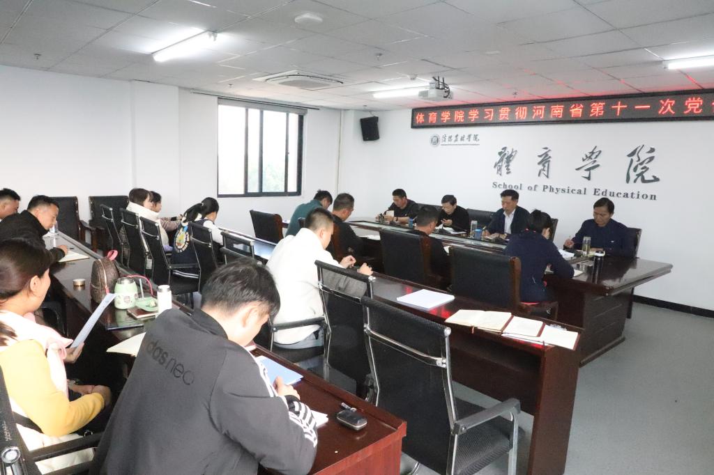11月2日,体育学院在学院会议室组织学习了中国共产党河南省第十一次代表大会精神,院党总支书记李耕主持,全体教师参加。