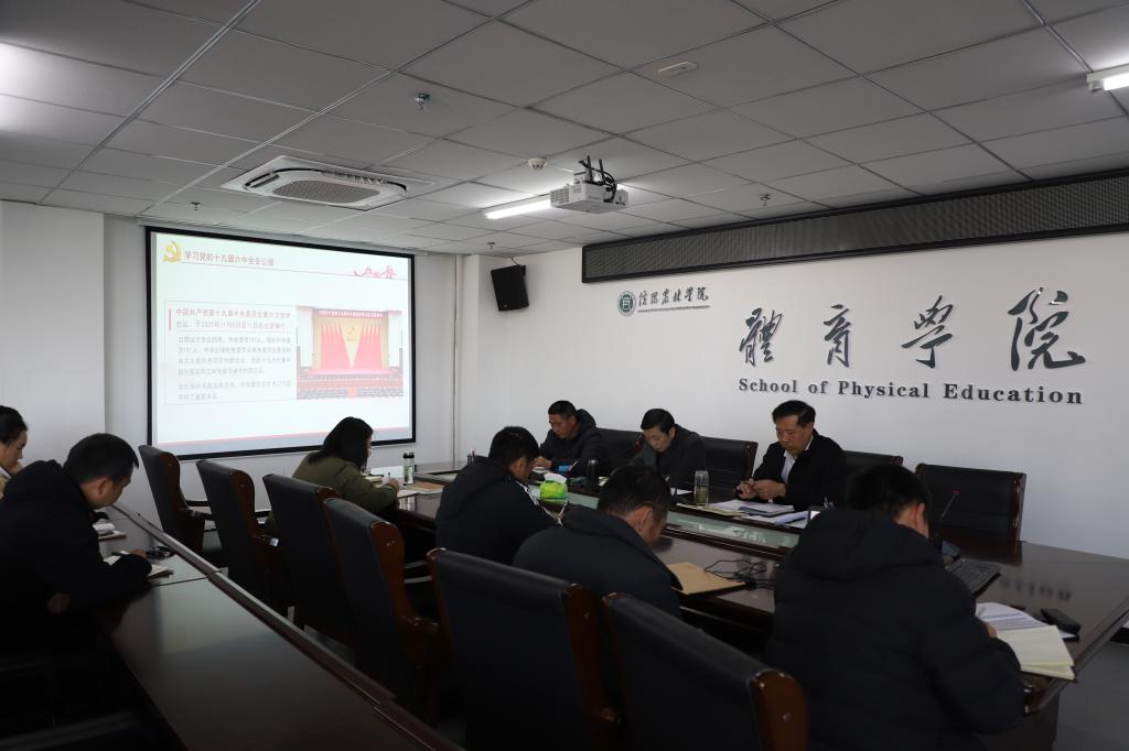 11月23日,体育学院于院会议室召开专题学习会,传达学习党的十九届六中全会精神。院党总支书记李耕主持,学院全体教职工参加。