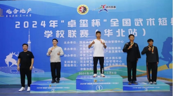 10月2日--6日,全国武术短兵学校联赛(华北站)在河北辛集市体育馆隆重举行。beat365在线平台官网短兵运动员孙盛博、郭航飞荣获1金2铜的好成绩。同时,两名运动员凭借其出色的表现,进入全国武术短兵学校联赛的决赛。