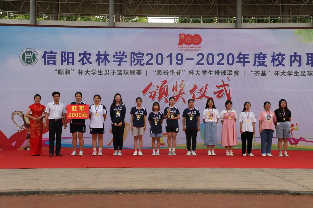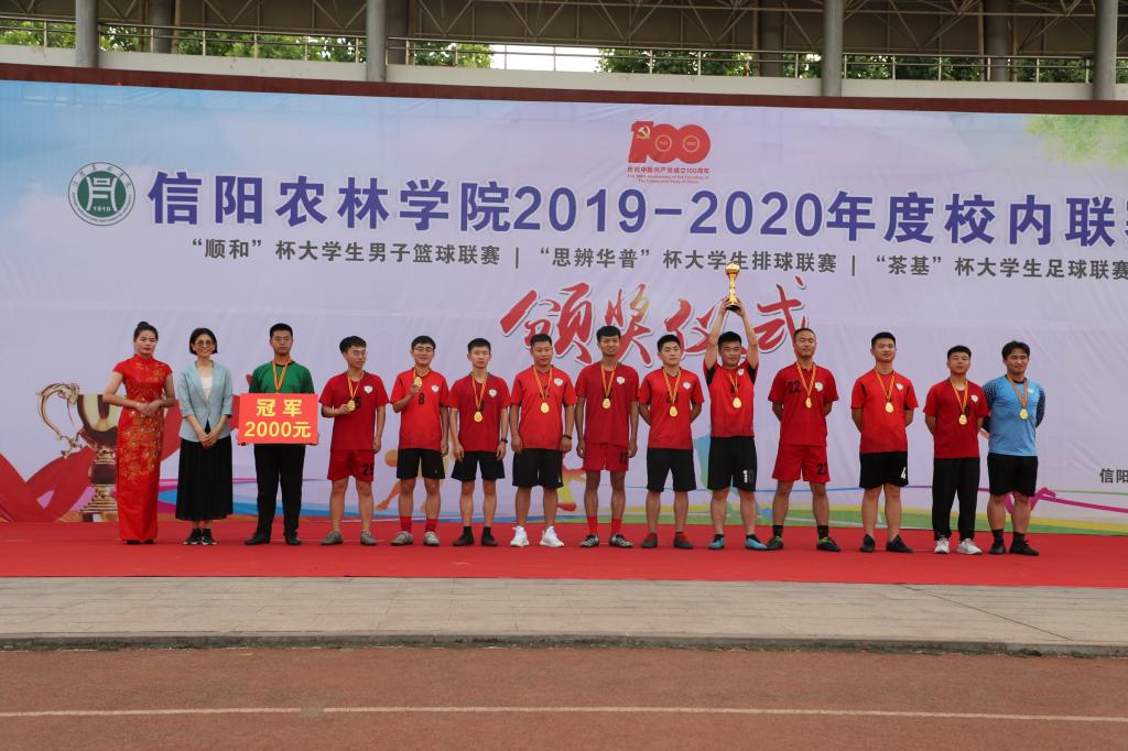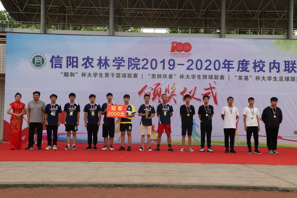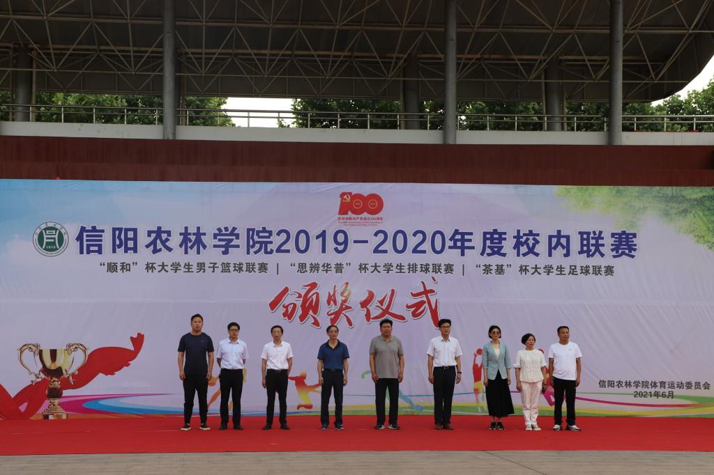 6月8日下午,由学校体育运动委员会主办,体育学院、学生处、校团委协办的beat365在线平台官网2019-2020年度校内联赛暨“顺和”杯大学生男子篮球联赛、“思辨华普”杯大学生排球联赛、“茶基”杯大学生足球联赛颁奖仪式在田径场隆重举行。校党委副书记黄松、副校长赵一鹏、黄遵东、王万玲、学生处处长简频捷、校团委副书记祝伟洋、农学院党总支书记李传宝、信息工程学院党总支副书记朱猛及体育学院负责人参加了颁奖仪式,仪式由体育学院院长李俊主持。