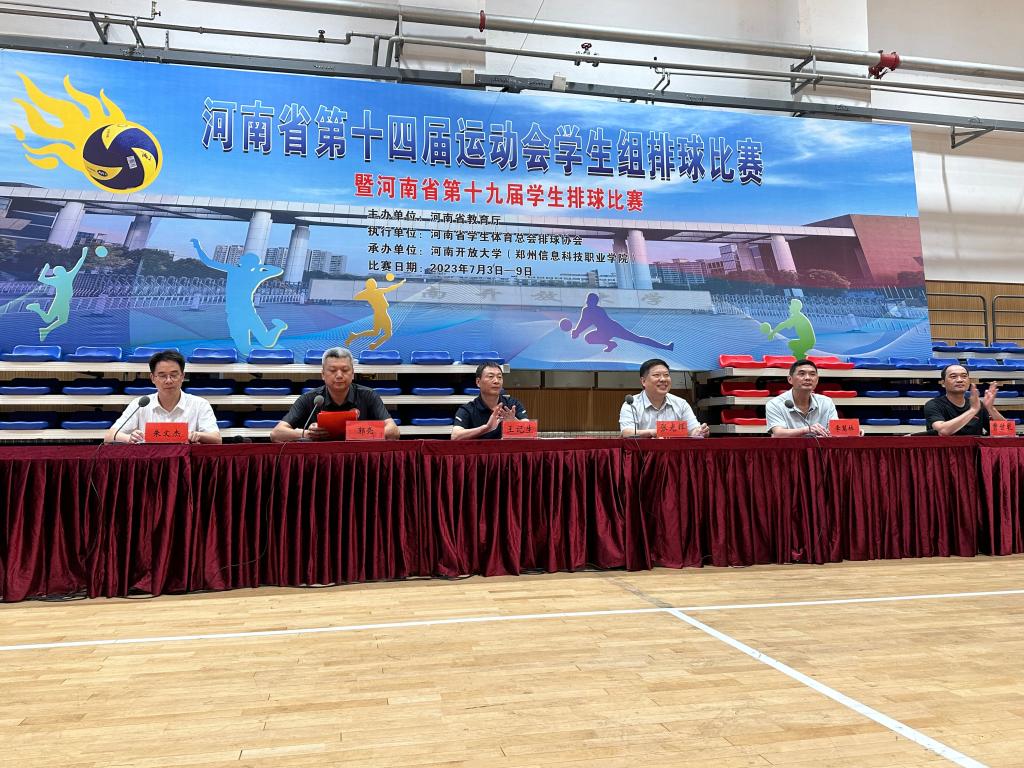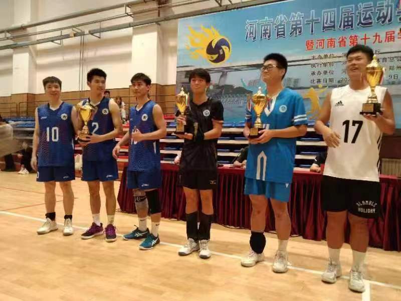 7月4日-9日,河南省第十四届运动会学生组排球比赛暨河南省第十九届学生排球比赛在河南开放大学隆重举行。全省共有来自30多所院校39支队伍800余名运动员参加比赛。beat365在线平台官网学生排球队参加了本次比赛,其中男子排球队表现优异,喜获男子甲组亚军。张光辉副校长亲临比赛现场为运动员鼓劲加油。
