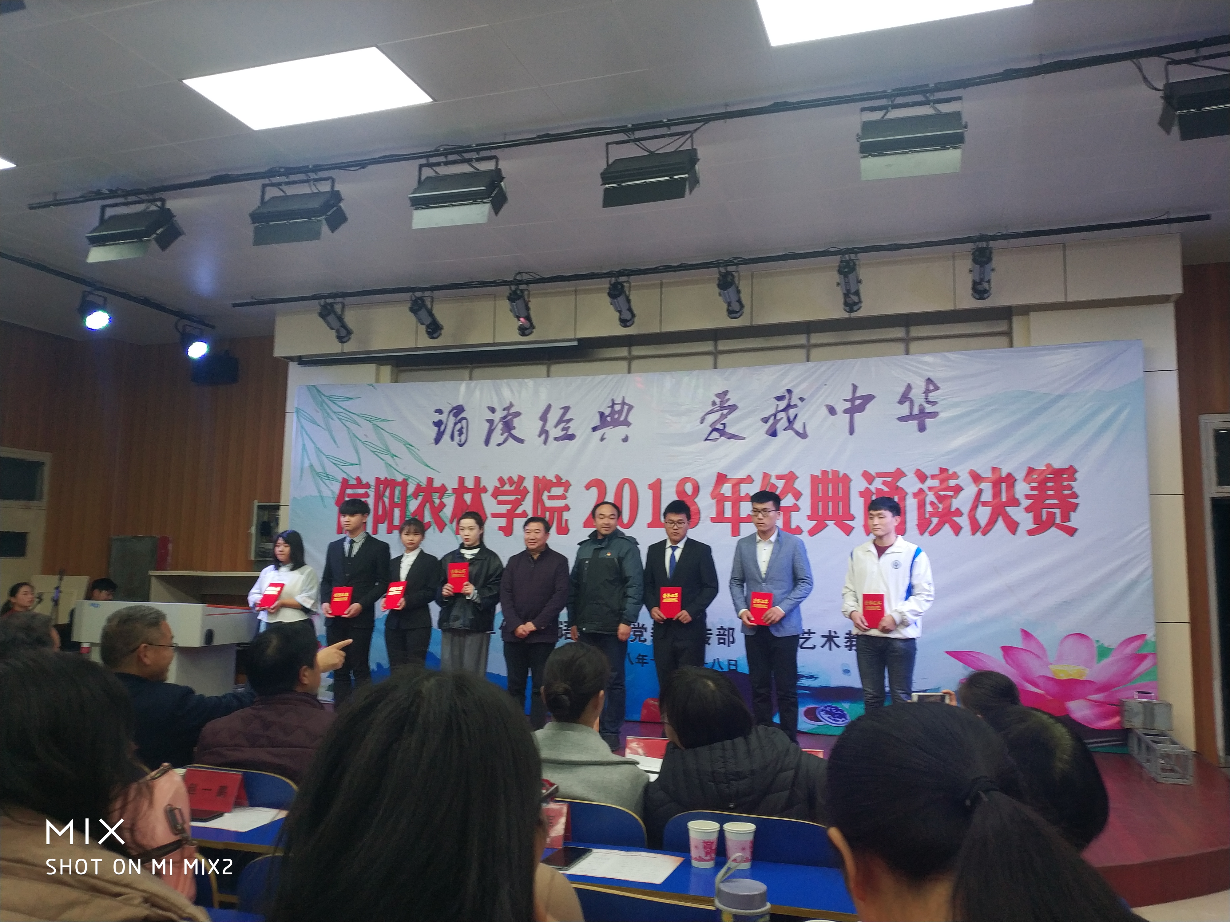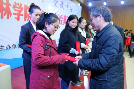 比赛结束后,相关领导老师为本次经典诵读决赛的获奖选手颁奖。