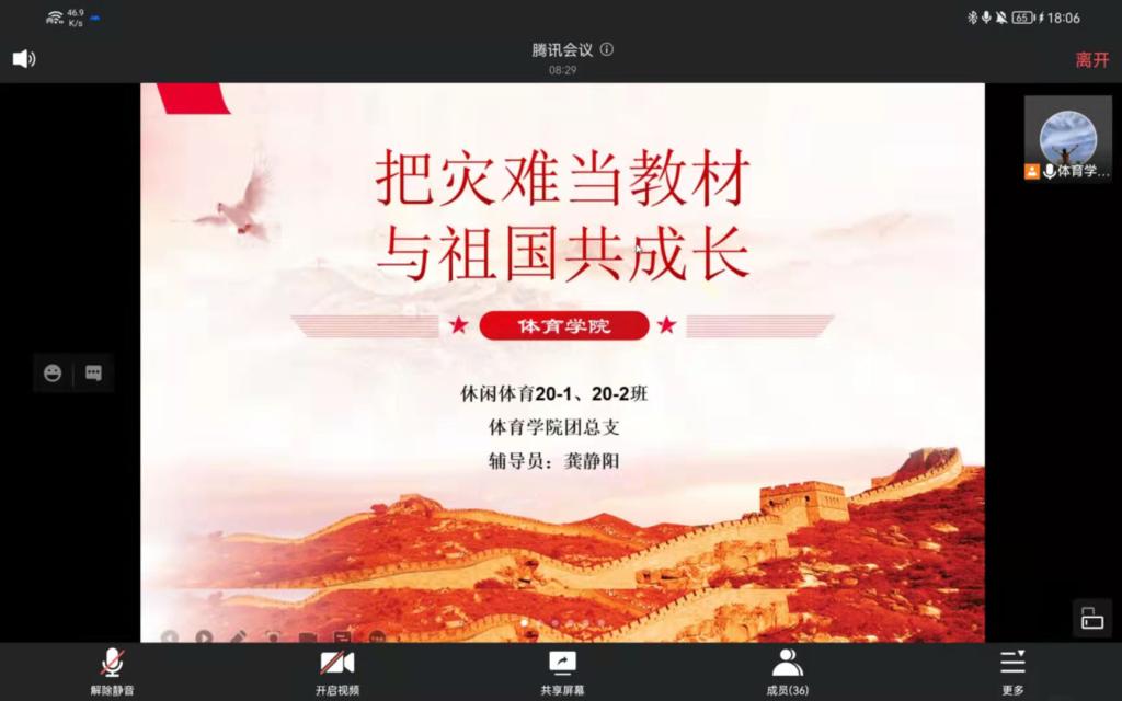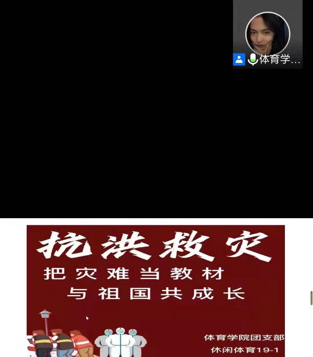 为贯彻落实中共河南省委高校工委、中共河南省教育厅党组《关于在防汛救灾中深化“把灾难当教材,与祖国共成长”主题教育的通知》要求,引导团员青年肩负起新时代青年使命和义务,有效用好抗击汛情、疫情防控的生动案例和鲜活素材,体育学院于9月5-6日组织全院开展了开学第一课暨“把灾难当教材,与祖国共成长”线上主题班会。