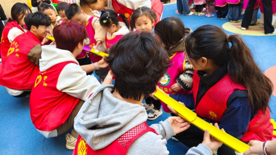 3月5日,体育学院的志愿者们带着满心热忱,走进了信阳市中央城幼儿园,为了给小朋友们带来一场别开生面的活动。志愿者们结合幼儿园教学大纲与孩子们的兴趣,设计了趣味横生的教学内容,为孩子们带来一段欢乐又有意义的时光。