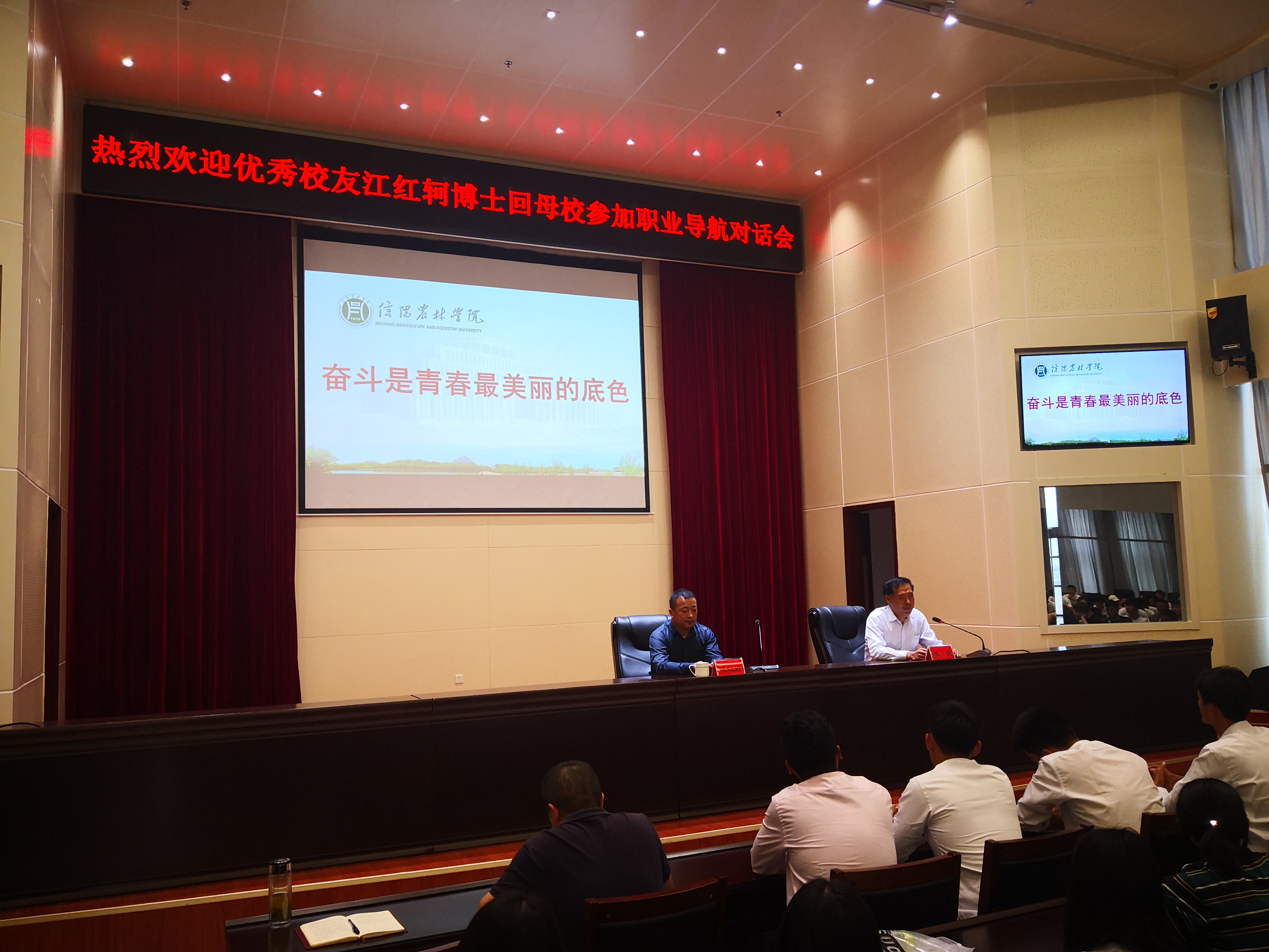 5月24日下午三点,体育学院邀请优秀校友江红轲博士在图书馆学六楼术报告厅与beat365在线平台官网学生开展题为“奋斗是青春最亮丽的底色”职业导航对话会活动。体育学院全体学生及beat365在线平台官网部分学生参加了对话会。