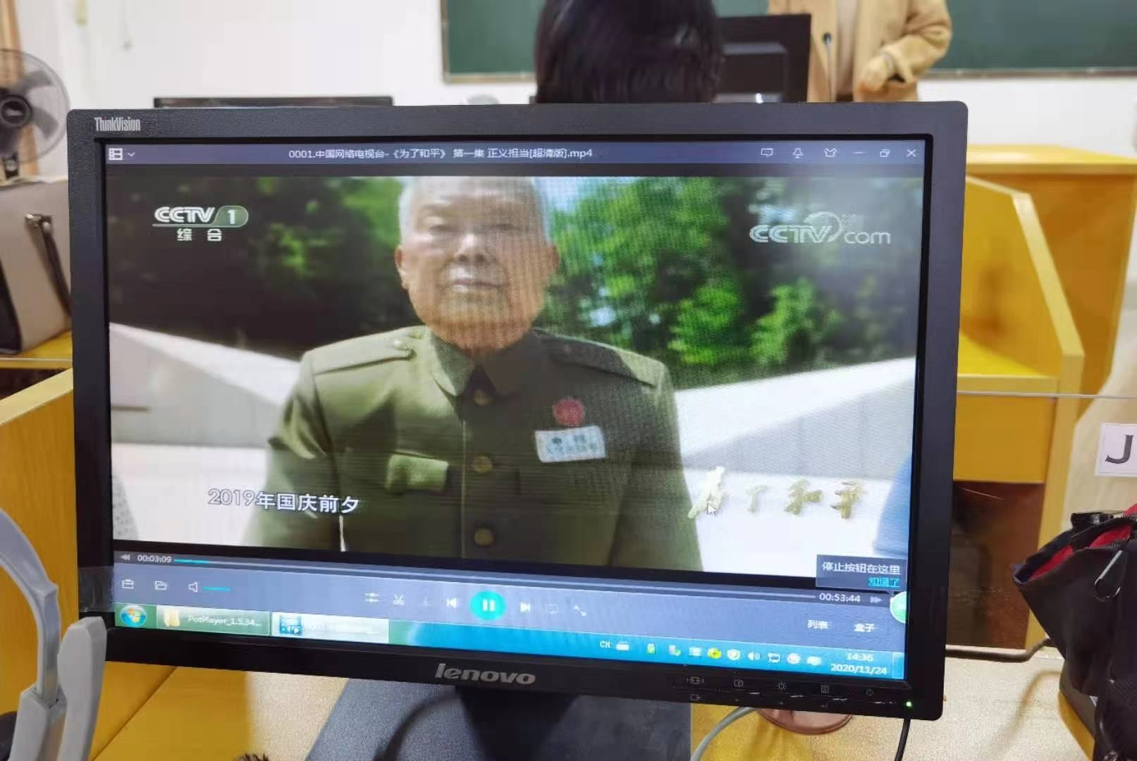 为深入贯彻落实习近平总书记在纪念中国人民志愿军抗美援朝出国作战70周年大会上的重要讲话精神,加强新时代爱国主义教育,引导外国语学院师生厚植爱国主义情怀,11月24日,外国语学院党总支在语音室2B406组织教职工集体观看纪录片《为了和平》。