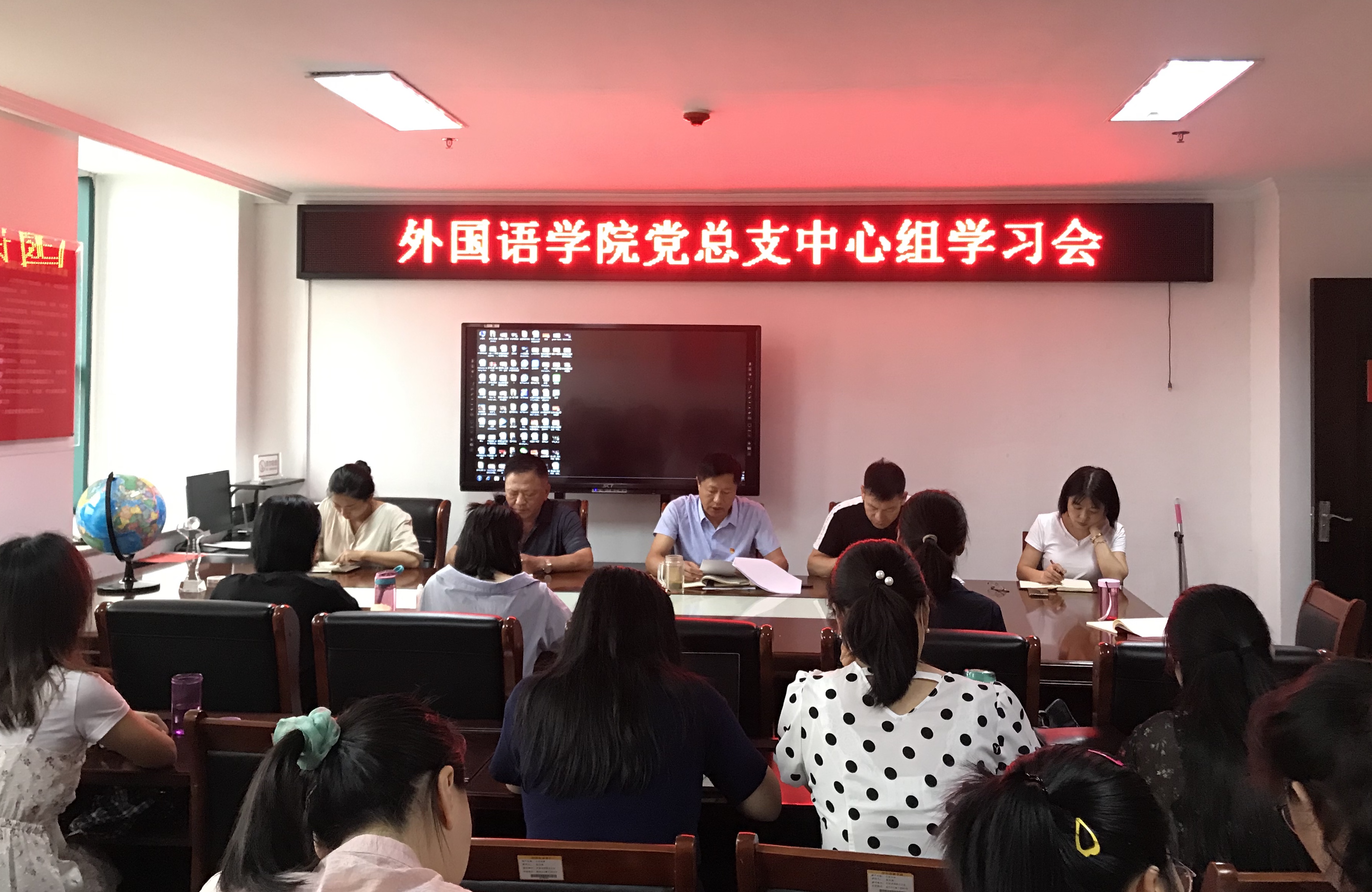 2020年7月14日,外国语学院在行政楼803召开中心组学习会。学院班子成员、总支委员、党支部书记参会,会议由党总支书记张志强主持。