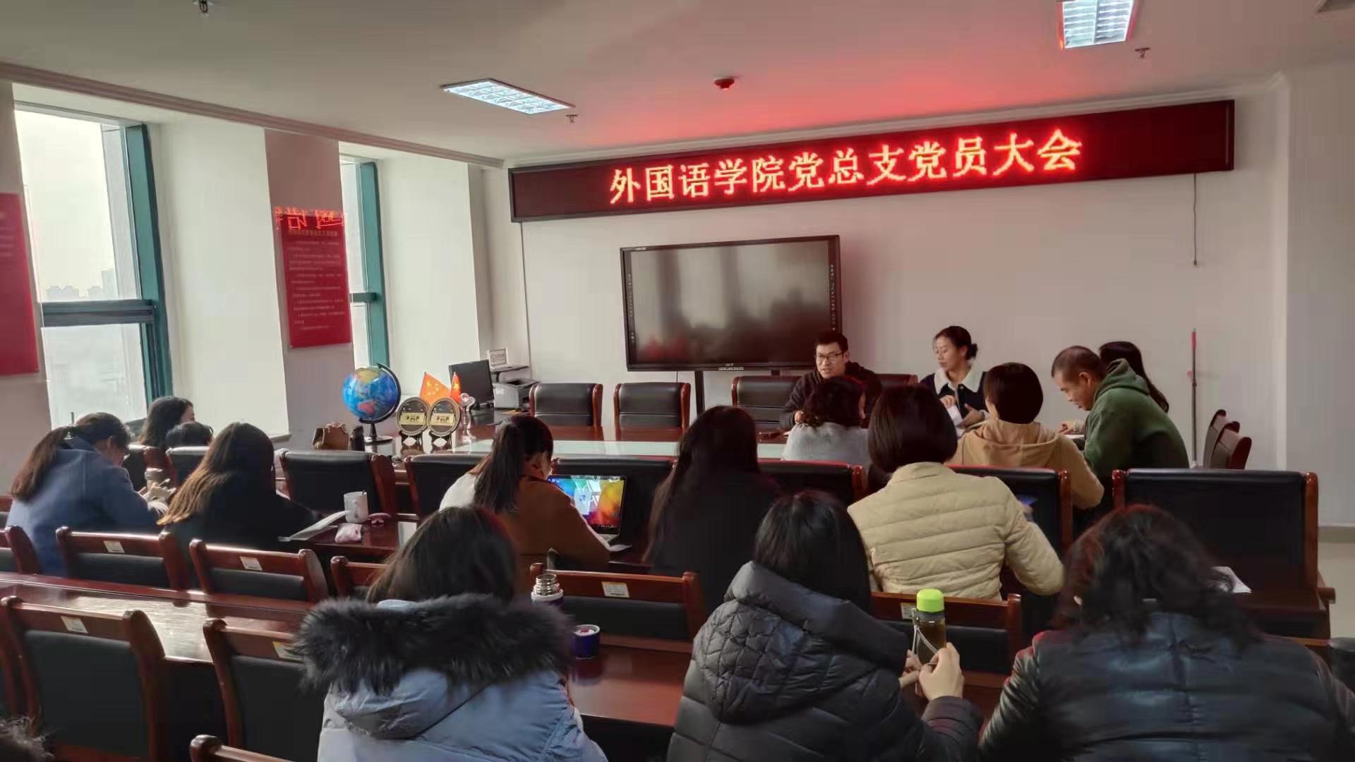 为进一步加强我院基层党组织建设,充分发挥基层党组织战斗堡垒作用,切实做好各项党建工作,12月10日下午,外国语学院党总支于院办803召开党员大会,会议由我院党总支副书记吴宏主持,副院长蔡鸣、学院班子成员、各党支部书记及全体教工党员参会。