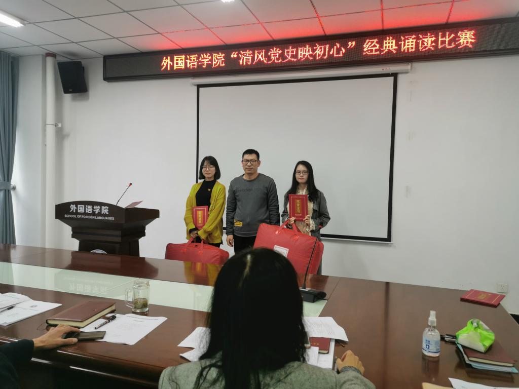外国语学院分工会积极响应学校号召,广泛动员广大师生积极参与,对参赛作品诵读内容及形式严格把关,于10月19日在学院会议室举办了“清风党史映初心”经典诵读活动。