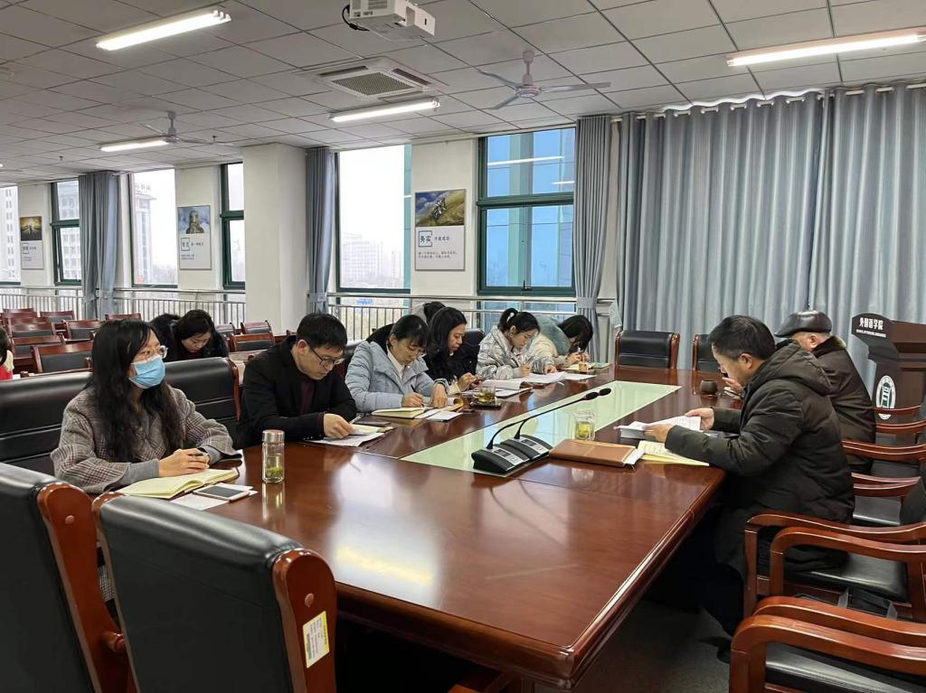 2022年1月6日下午3:00,外国语学院在文学艺术楼402会议室召开党总支中心组(扩大)学习会,会议由党总支书记张志强主持,学院科级及以上干部参会。