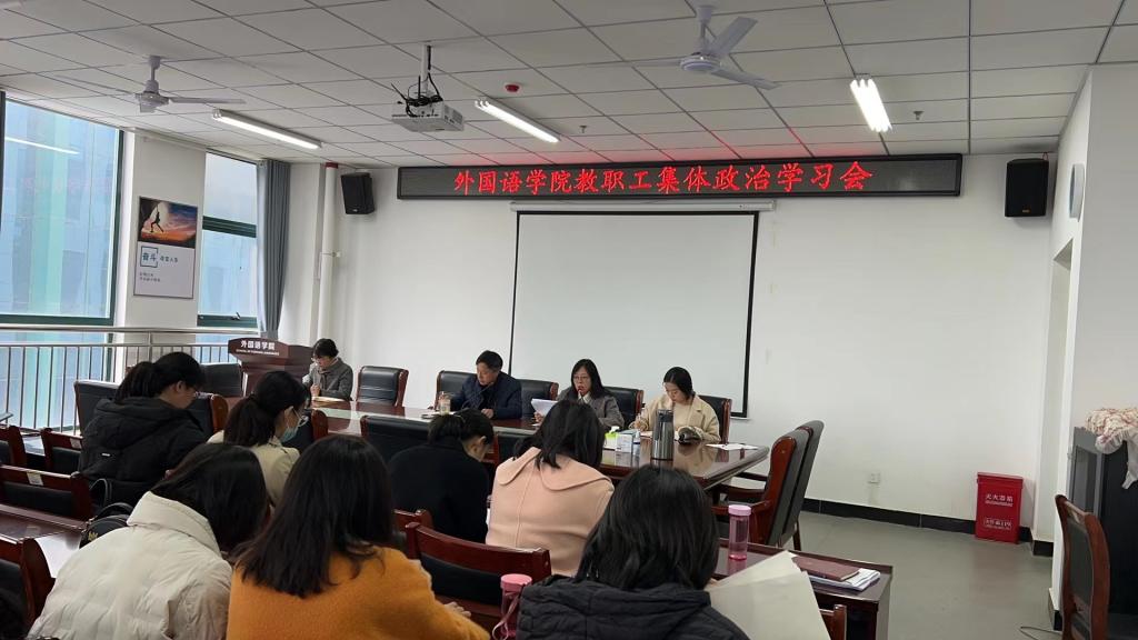 3月21日下午,外国语学院在文学艺术楼402会议室召开集体政治学习会议。学院党总支书记张志强主持会议并讲话,学院全体教职工参会。