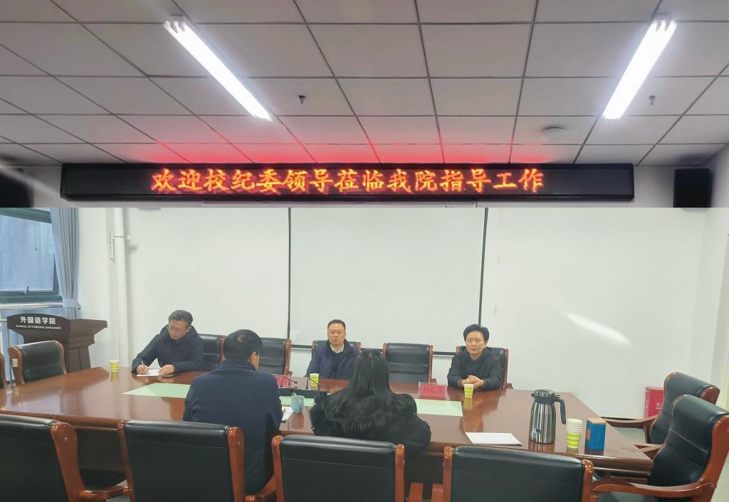 1212日下午,纪委书记陈寒冰、副书记杨红霞、办公室主任何军一行外国语学院走访调研。学院党总支书记张志强、副院长芦晓莉参加了本次调研。