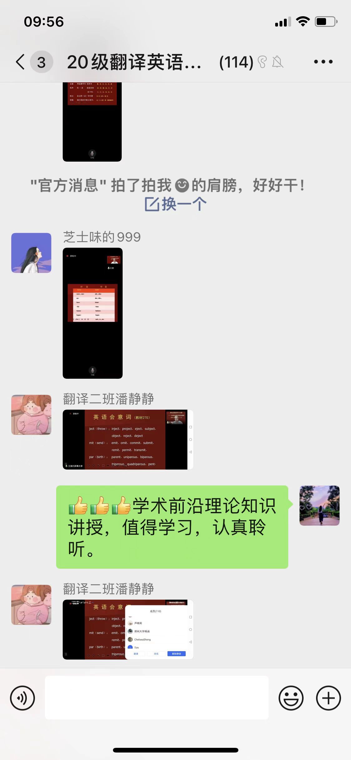20级翻译专业学生认真聆听了报告,并进行了积极的线上交流。希望通过本次学习机会,能够开阔外院学生的学术视野,同时进一步巩固英语词汇相关学习。