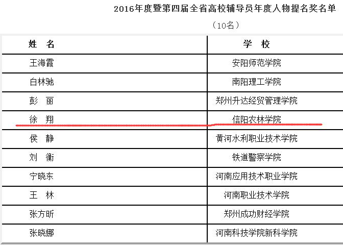 省委高校工委、省教育厅开展了2016年度暨第四届全省高校辅导员年度人物评选活动,外国语学院辅导员徐翔老师代表学校参加了比赛,经过材料审核、通讯评审、面试答辩和集中评议等环节,徐翔老师从全省一百多名辅导员中脱颖而出,以总排名第14名的好成绩获得“第四届全省高校辅导员年度人物”提名奖。这也是beat365在线平台官网辅导员参加全省辅导员年度人物评选活动以来获得的最好成绩。