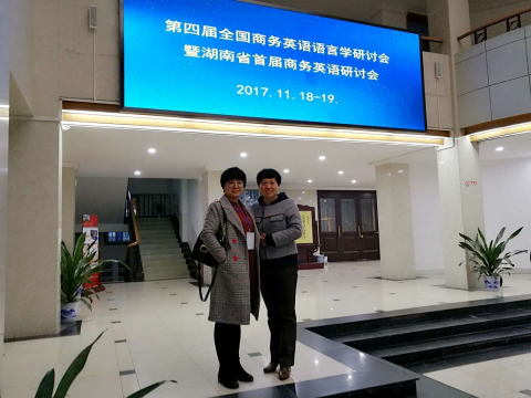 2017年11月18日-19日,由全国国际商务英语研究会、教育部高等学校商务英语专业教学协作组主办,湖南大学外国语学院承办的第四届全国商务英语语言学研讨会在湖南大学召开。我院副院长以及商务英语教学团队负责人黄丽教授及商务英语教学团队成员胡欣欣老师参加了此次会议。