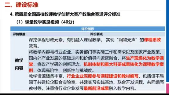 此次培训是为了更好的帮助高校教师理解掌握产教融合的组织方式,提高产教融合课程建设水平,进而全面掌握产教融合赛道评分标准内涵、创新大赛课堂教学实录视频、创新成果报告、教学设计创新汇报等各项备赛要点,培训内容包括高校教师教学创新大赛‘产教融合’赛道基础篇、案例篇和比赛篇,涵盖了课程建设标准、方案、案例、教学设计、教学实录,以及逐项解读产教融合创新成果报告评分标准、撰写要点及关键步骤。会后,冯昱老师和各位专家、同行教师进行了深入交流,共同探讨了商务英语专业产教融合赛道的途径。