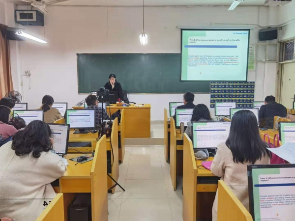 来自三个教研室的四位教师按照教学进度分别为大家带来了《大学英语(一)》、《综合商务英语(一)》、《综合商务英语(三)》以及《英语视听说(一)》相关章节的讲解。四位教师精神饱满,教态自然大方,展示了清晰的课程设计思路、较好的课堂组织能力和专业的英语教学功底,通过生动的讲述、丰富的肢体语言,有层次、有重点地教授专业知识。