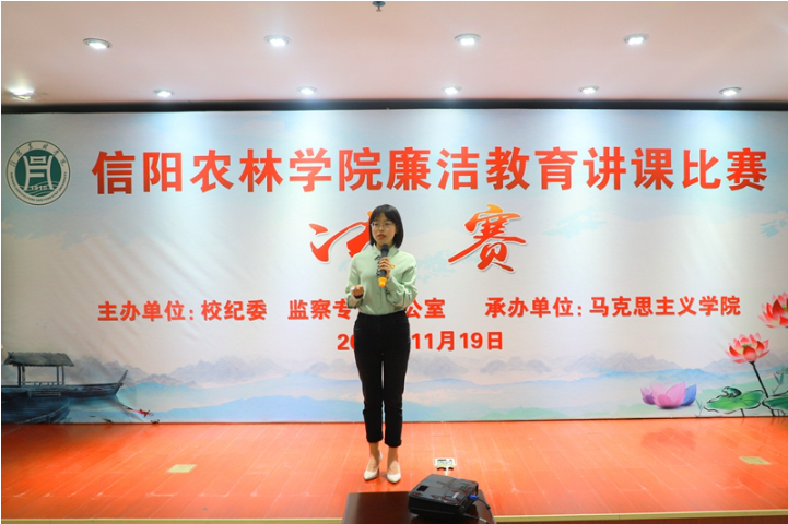 为贯彻落实习近平总书记在全国高校思想政治工作会议上的讲话精神,用好课堂阵地,探索新时代廉洁教育教学方法,提升教书育人本领,强化大学生道德修养,外国语学院党总支积极响应学校号召,高度重视,于10月15日上午在行政楼803开展了廉政党课专题比赛,并推荐高宇老师参加学校首届思想政治理论课廉洁教育讲课比赛。经过预赛、决赛的激烈追逐,我院高宇老师获得一等奖的好成绩。本次活动是推进廉洁教育进课堂、进教材、进头脑的重要举措,是学校推进课堂思政、强化课程思政的重要载体,是提高教师讲课能力的重要途径。(外国语学院)