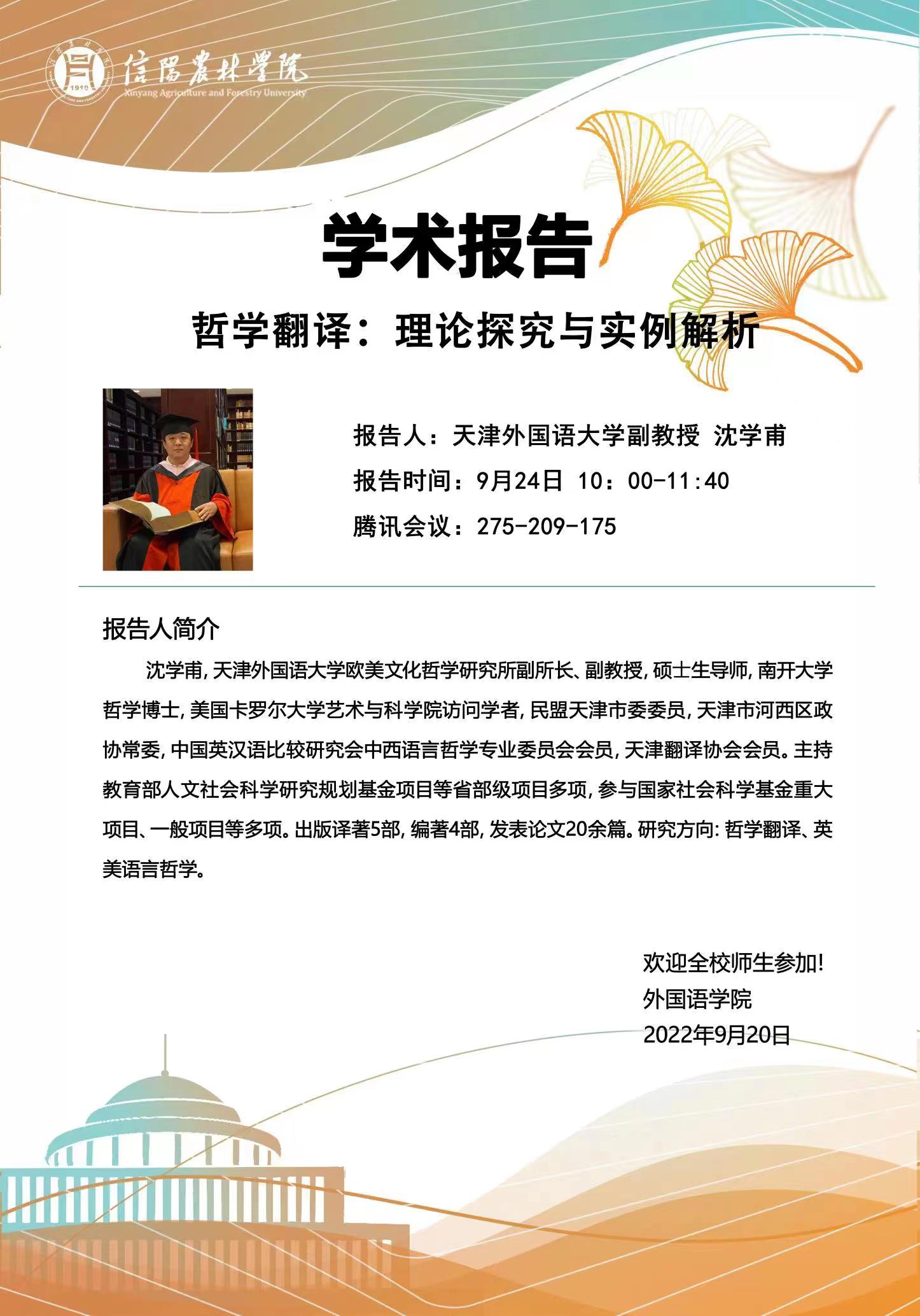外国语学院学术报告----哲学翻译:理论研究与实例解析