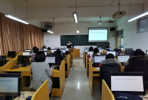 20201124日,外国语学院在2B406开展教学管理规范培训系列活动(二),翻译教研室副主任吴甜甜老师就最新的教学资料(包括教学大纲、实验大纲、考核大纲、教学任务书、实习实训大纲、教学进度表、教案等)内容的完善和修订给予展示讲解。