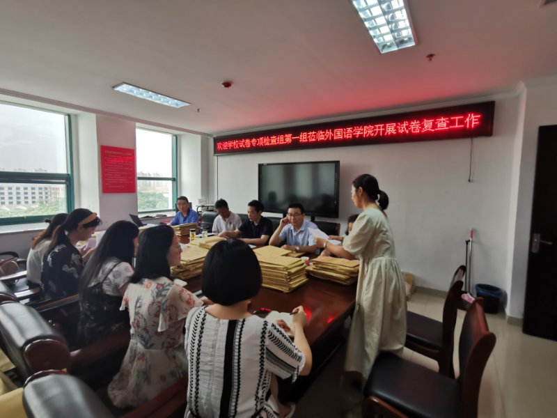 根据学校本科教学合格评估试卷专项检查工作的安排,7月31日上午8月3日下午及8月4日上午,学校试卷专项检查第组在李明彦组长带领下,对外国语学院2018-2019学年两个学期2019-2020学年第一学期试卷问题台账整改情况开展复查工作。