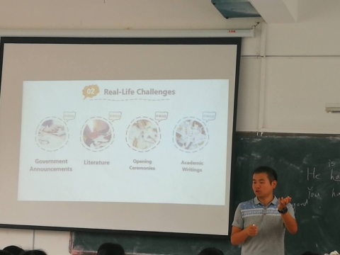 此次示范课,闫达老师利用期末的机会对学期中教授的翻译理论知识及翻译实务处理技巧进行了总结,课程以英汉互译为主线,以翻译实操为切入点,清晰展示了翻译过程中准备、理解、翻译输出的完整过程,授课内容详实、流畅、生动,使得令人生畏的翻译理论知识变得形象、具体、有趣。
