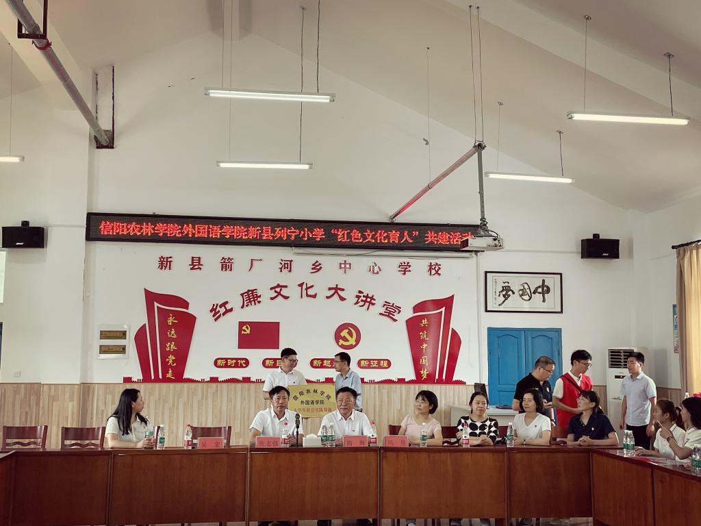 随后,社会实践小分队走进列宁小学(箭厂河乡中心学校),与列宁小学校领导开展“红色文化”共建活动座谈,会上,党总支副书记吴宏指出,我院将结合专业优势,充分利用箭厂河乡红色优势资源,开展“三全育人”活动和“手拉手”帮扶活动,并定期来校对学生进行学业辅导、红色文化宣讲、互进学校开展互访等活动;接着外国语学院和列宁小学进行了大学生社会实践基地的授牌。座谈会结束后,社会实践小分队成员们对小学生们开展一对一、一对多交流,并对学生英语学习中遇到的难题进行了解答,解决孩子们英语学习中存在的困惑,帮助其提升语言学习的兴趣;为实现结对帮扶的针对性、有效性和长期性,小分队成员们还将在社会实践考察结束后,认真分析孩子们英语学习的薄弱环节,定期下乡对孩子们进行课业辅导;此外,大家还为孩子们赠送了学习用品,并鼓励他们要勤奋好学、追求卓越!