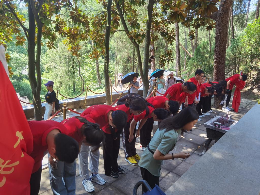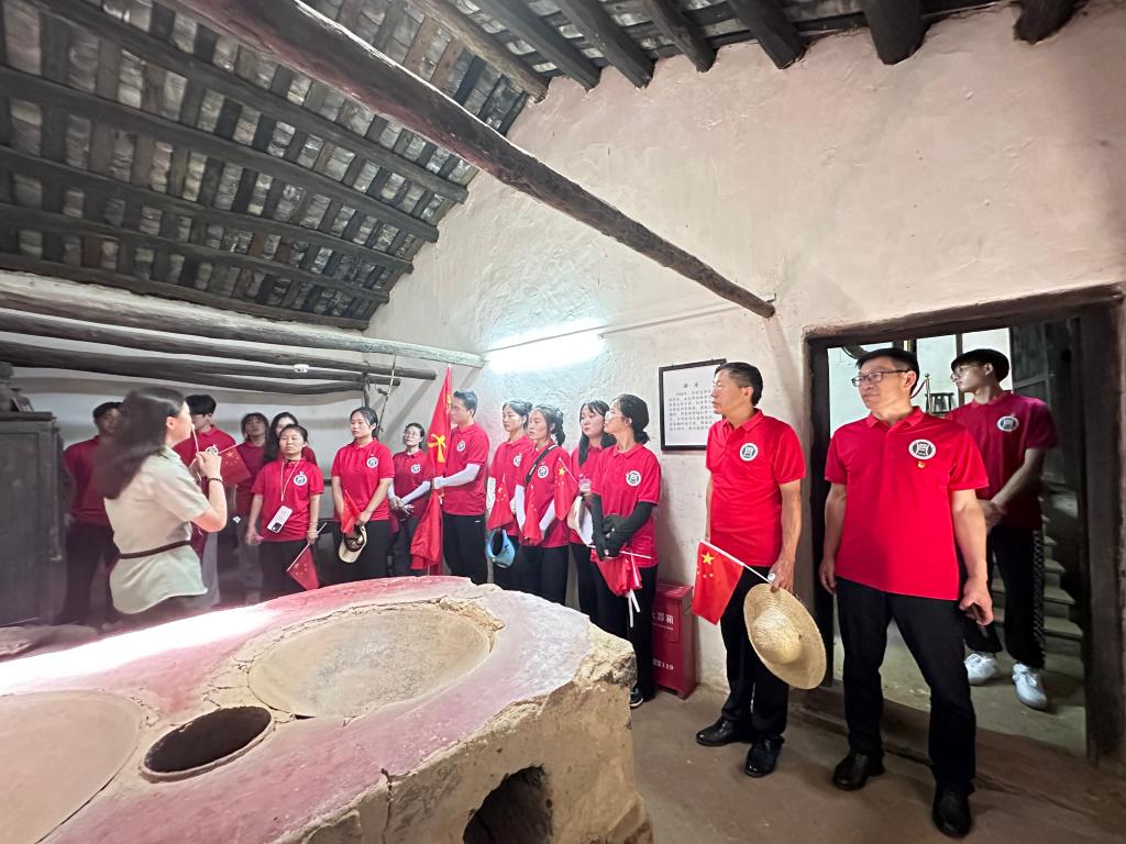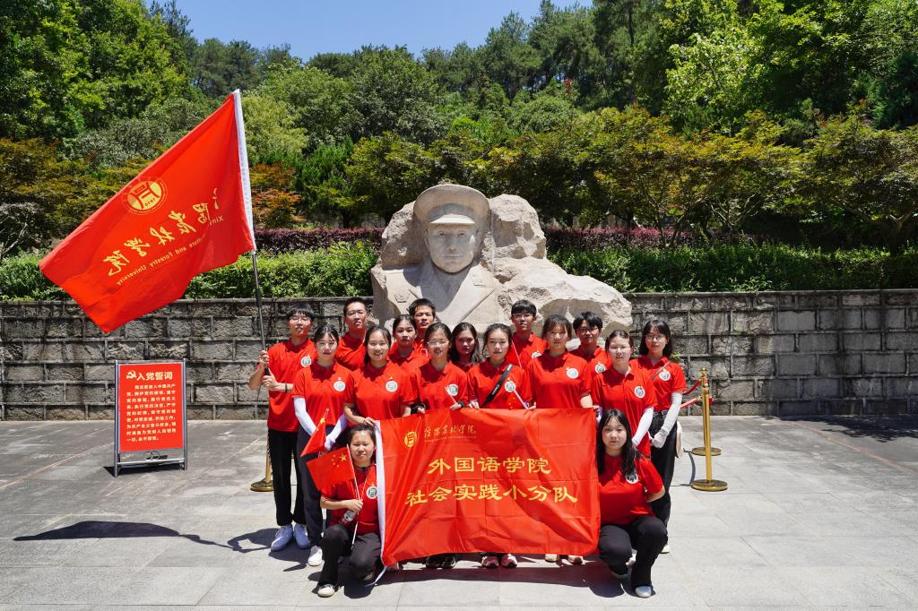 7月6日上午,分队成员们来到了“中原将军之乡”新县箭厂河乡。在箭厂河乡列宁小学旧址旁的肖国清烈士铜像前,青年学生代表杨春平为大家讲述了“永不凋谢的红杜鹃”、大别山的“刘胡兰”——肖国清烈士事迹;在位于新县箭厂河乡程怀天等300余名革命烈士英勇救义地红田遗址纪念碑前,思政课教师张哲源为大家讲述了“青山埋忠骨,‘红田’铸忠魂”的“红田”革命精神;在箭厂河四角曹门村,小分队师生先后参观了箭厂河四角曹门村的吴焕先故居、鄂豫边中心区第一个农村党支部。在这里,外国语学院党总支书记张志强同志为大家讲述了吴焕先为理想为革命斗争的故事;讲述了澎湃、吴焕先烧地契,帮穷苦老百姓的故事。激励大家要学习先烈为理想、为事业放弃小我,为国家为民族不懈奋斗的家国情怀。