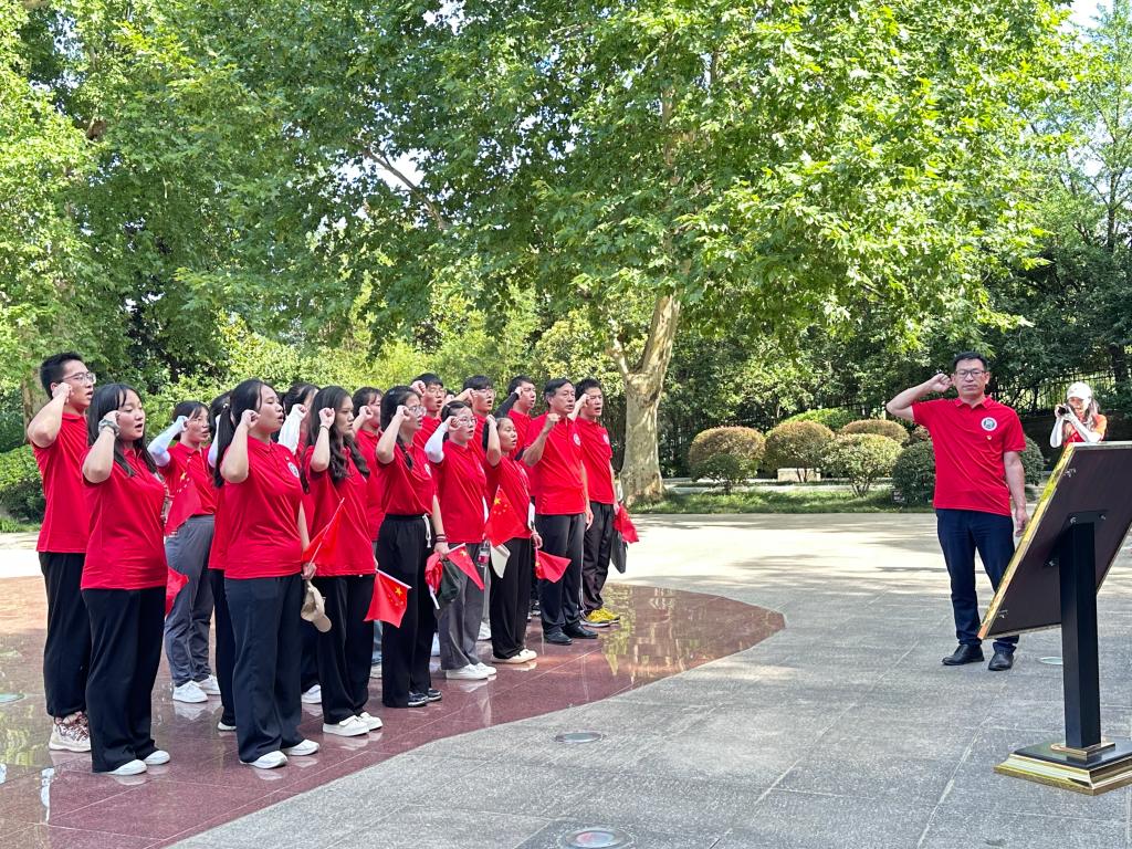 7月5日上午早上七点,学校党委委员、宣传部长简频捷同志宣布我们这次小分队出发,信阳阳光灿烂、蔚蓝的天气仿佛在用温暖的怀抱鼓励我们这支队伍顺利出发,努力完成这次大思政的实践活动。伴随着一路红歌,大别山小分队师生沿着习近平总书记的足迹,第一站来到了鄂豫皖苏区首府革命烈士陵园,瞻仰了革命烈士纪念碑、纪念堂,聆听革命先烈的故事,缅怀革命先烈。在烈士陵园革命英烈广场,全体党员重温了入党誓词,思政课教师王改丽现场讲授了“继承和发扬大别山精神”主题思政课,带领大家深入学习领悟中国共产党人精神谱系--“坚守信念、胸怀全局、团结一心、勇当前锋”的大别山精神的深刻内涵和时代价值;革命烈士吴焕先的侄孙女,新县高级中学教师吴阳春女士受邀为大家讲述了吴焕先烈士的英雄事迹,大家在吴焕先烈士的雕像前驻足鞠躬,表达了哀思。