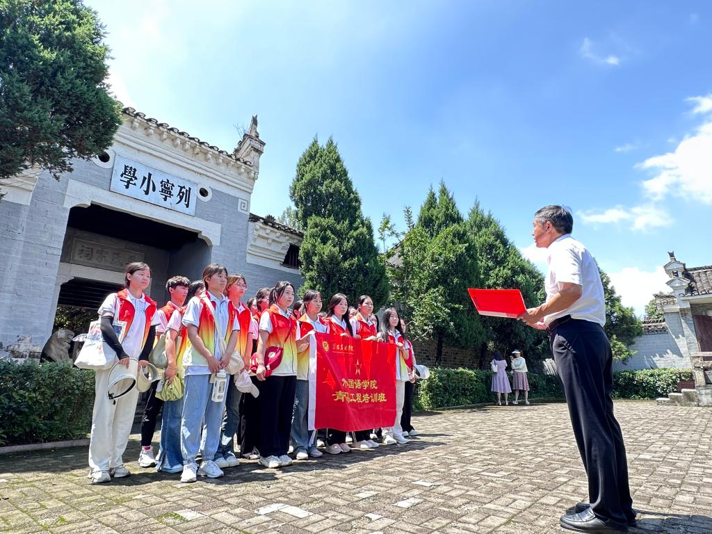 根据《beat365在线平台官网关于开展“牢记嘱托践使命 行走中原看巨变”暑期大思政实践活动的实施方案》和beat365在线平台官网校团委“5+x”实践育人工程实施方案的要求,6月26日,外国语学院社会实践小分队赴红色革命老区新县开展了暑期社会实践活动。院党总支书记张志强、副院长芦晓莉、副书记吴宏、团总支书记高宇与30余名青马工程学员代表一起参加活动。