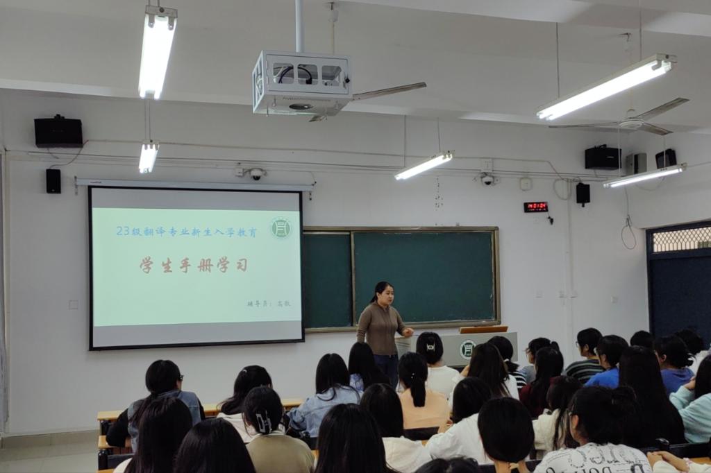 2023年9月27至28日,外国语学院陆续开展了以“学生手册知识”、“学籍管理规章制度”和“校园安全教育”为主要内容的新生入学教育主题班会,新生辅导员黄露露、叶又超、高歌带领各班开展了相关学习。
