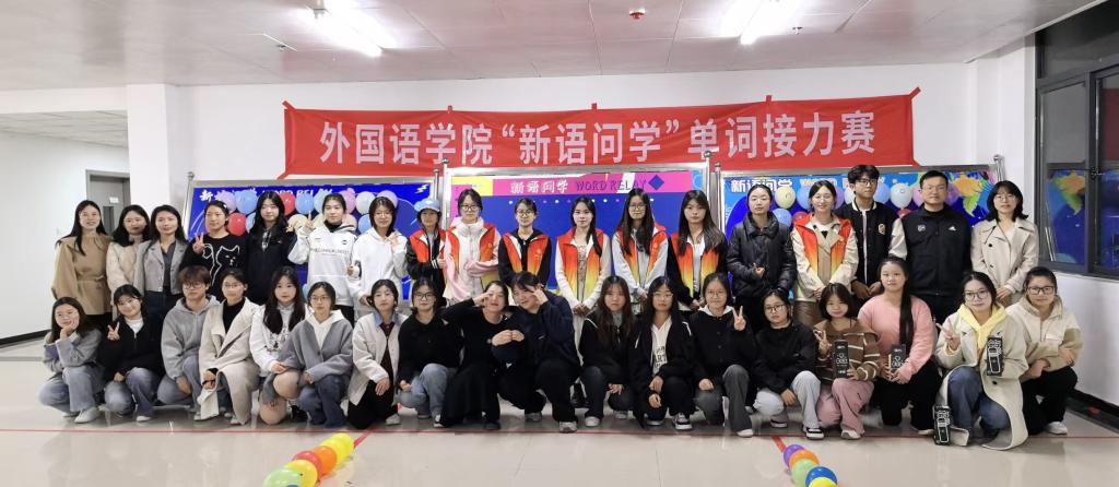 外国语学院充分发挥红色文化、优秀传统文化育人功能,将专业学习与学生活动融合,20241022日,在3B实验楼二楼举办了新语问学单词接力赛。外国语学院党总支副书记魏薇,专职组织员朱俊梵、团总支书记高宇、24级新生辅导员及教师代表、24级新生,学生党支部、外语社团学生代表共同参加了本次活动。
