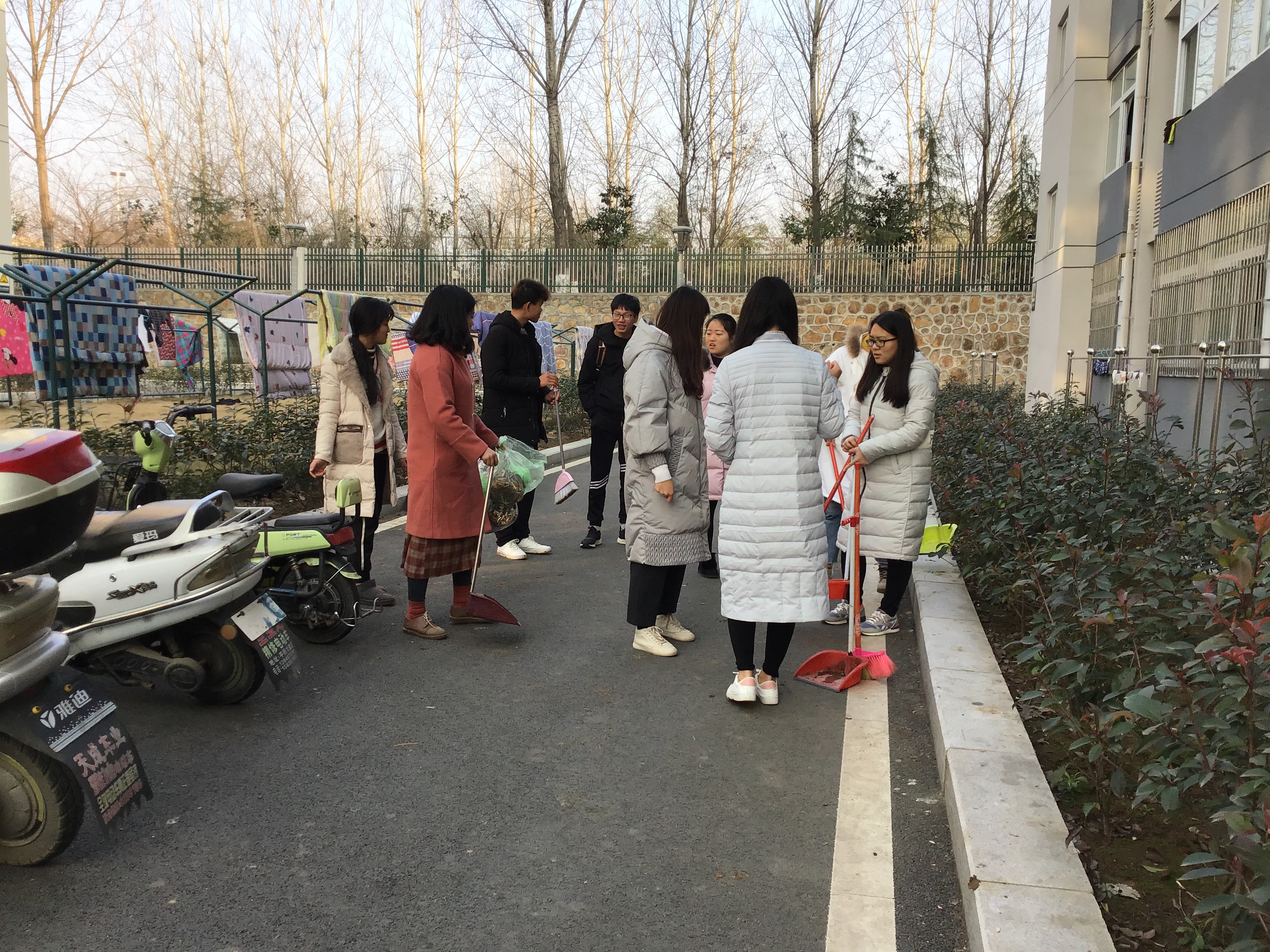 为进一步营造良好的校园环境,弘扬“奉献、友爱、互助、进步”的志愿精神,1216日下午,外国语学院文明素养提升工程示范班商务英语2017-3班开展了“校园文明伴我行”卫生清扫活动,全体同学参加了此次活动。