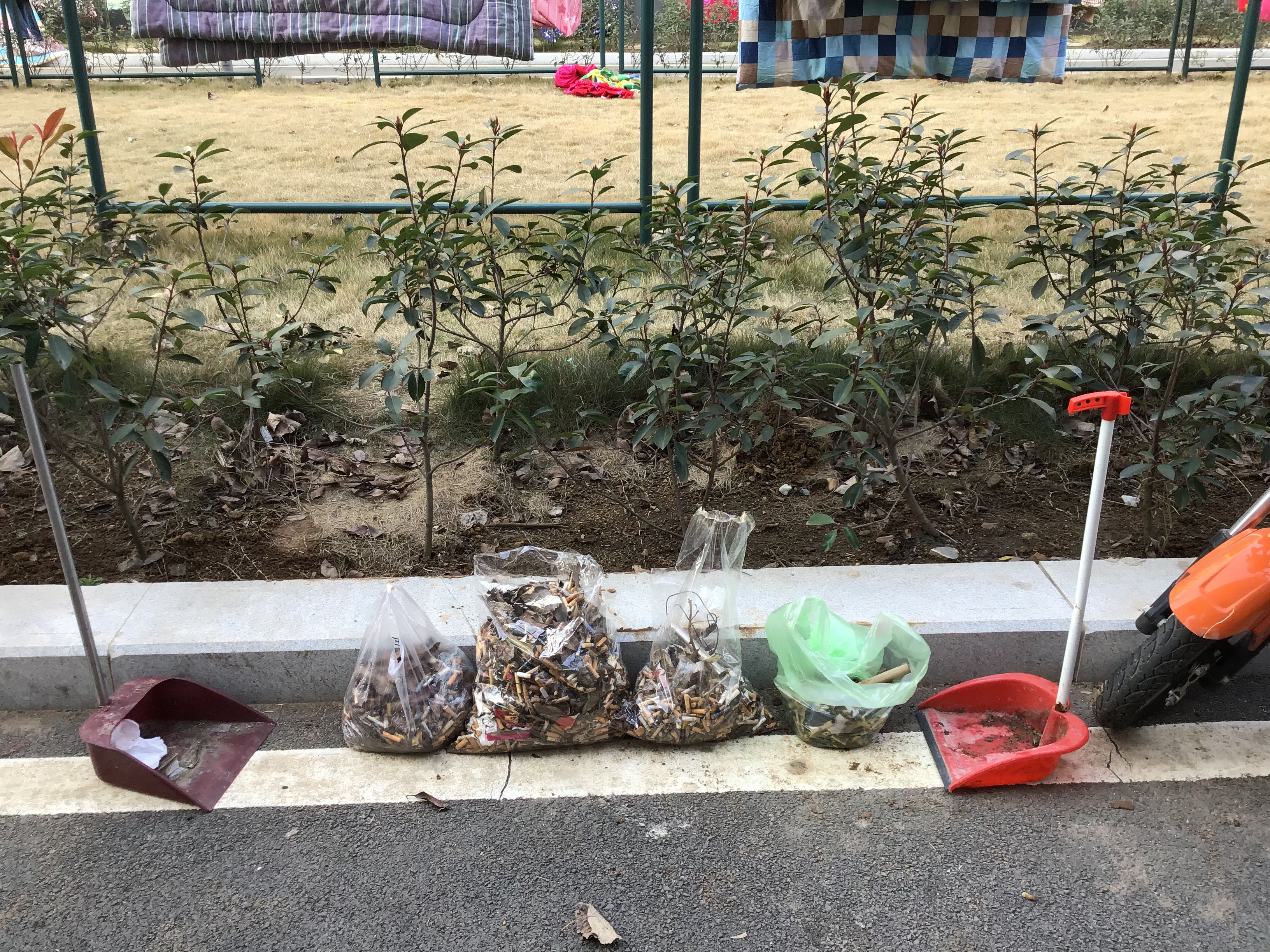 同学们在班长李晓月的带领下,对11至14号宿舍楼进行较为全面的清扫。尤其是对宿舍楼周围的生活垃圾进行了重点清洁。同学们在有序地领取清扫使用的工具后,便积极投入到清扫的工作中。他们细心的对每一寸草地进行检查;耐心地拾起每一个细小的烟头,每一片窄小的纸屑。经过两小时的努力,同学们已经将所拾区域的所有垃圾全部清理干净。