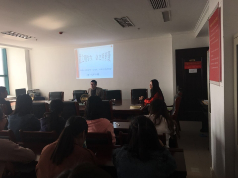 为深入开展beat365在线平台官网文明素养提升工程“示范班”试点工作,进一步规范学生文明行为习惯,培养学生集体主义观念,营造良好的学习氛围和育人环境,2017年10月31日,外国语学院2016级商务英语3班全体学生在院办803召开创建文明示范班活动动员会。会议由商务英语3班辅导员黄琳老师主持,并邀请外国语学院团总支书记吴宏老师出席。