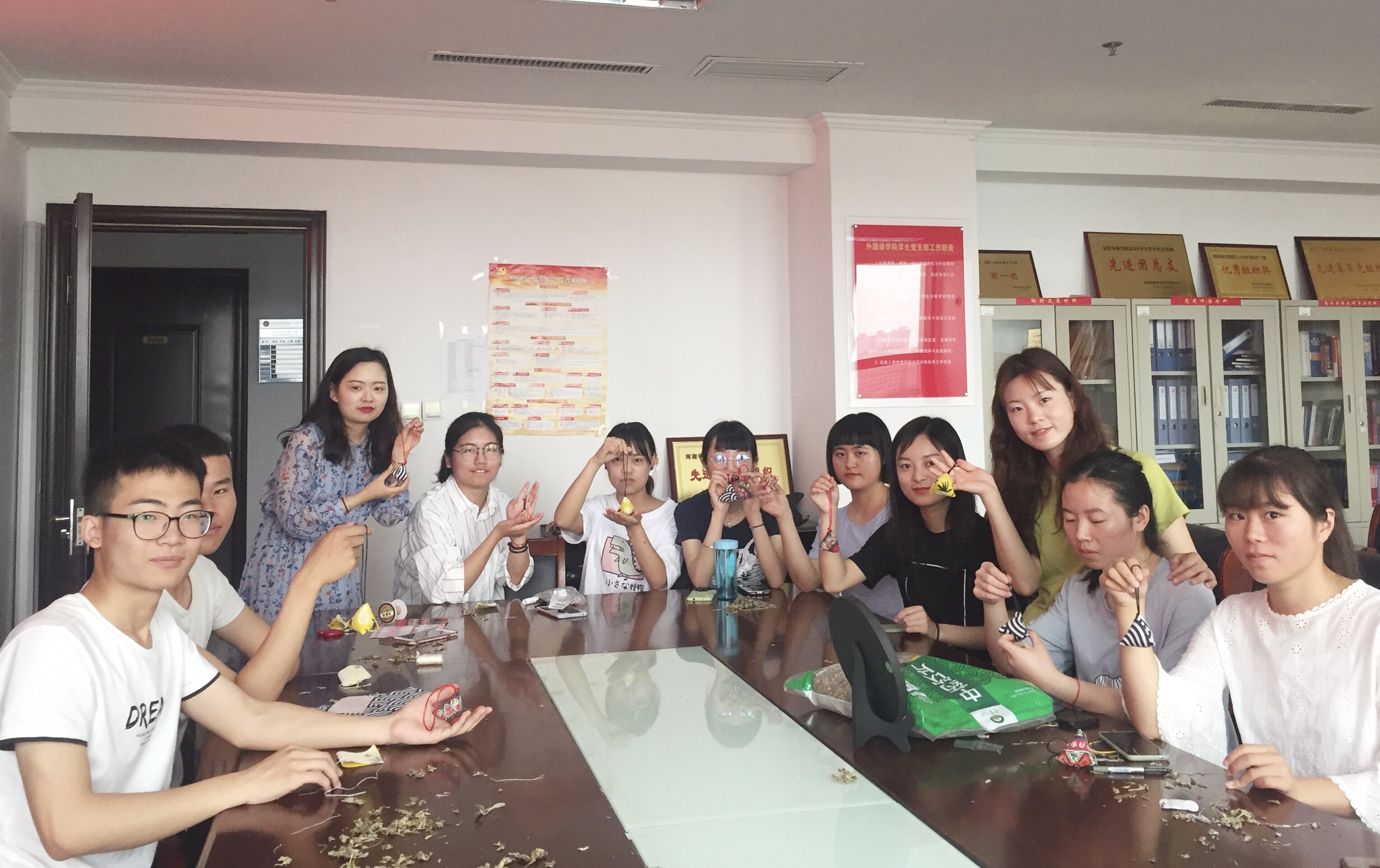 为弘扬中华民族优秀传统文化,丰富学生校园文化生活,6月8日上午,外国语学院文明素养提升工程示范班商务英语2017-3班在行政楼803举办了“艾叶飘香 浓情端午”香囊制作主题活动。