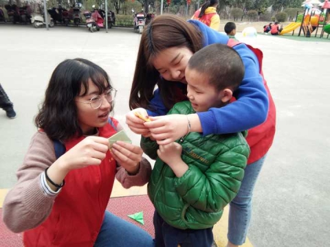 活动开始,我院团总支书记范琼琼老师针对福利院实际情况,对志愿者们进行合理的安排和分工。她温馨提醒志愿者们,福利院的孩子们缺乏父母关爱,要用心和孩子们沟通交流,让他们融入到游戏中,和他们一起度过一个愉快的周末。紧接着,朱俊梵老师带领志愿者们为福利院儿童送上食物、小玩具,给孩子们带来了欢乐。活动中,志愿者们教小朋友们折彩纸,吹气球,做游戏场面氛围融洽。活动最后,志愿者们为小朋友献上了祝福歌,祝愿孩子们能够健康快乐地成长!