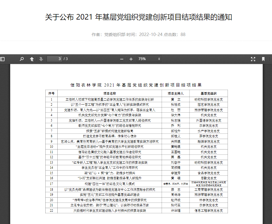 关于公布 2021 年基层党组织党建创新项目结项结果的通知(转党委组织部)