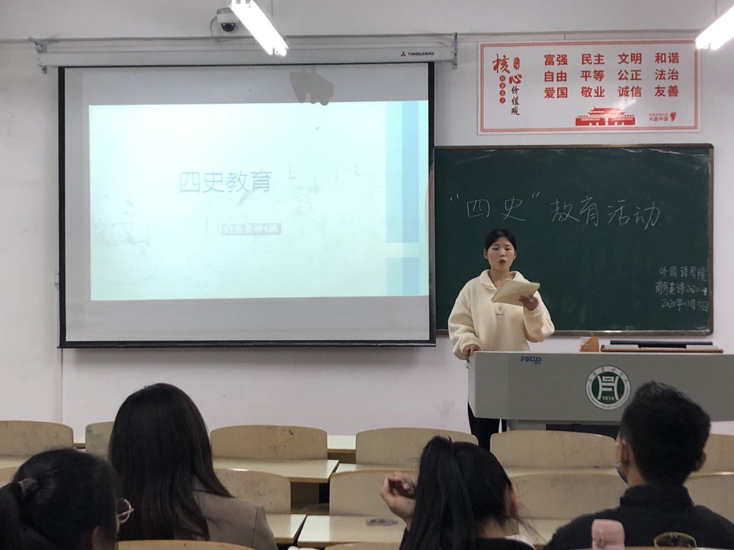 为响应习近平总书记号召,深入贯彻落实关于党史、新中国史、改革开放史、社会主义发展史学习的重要指示精神,外国语学院于2020年11月1-5日组织各班学生召开“学四史,守初心”主题教育班会,班会由各班辅导员主持。