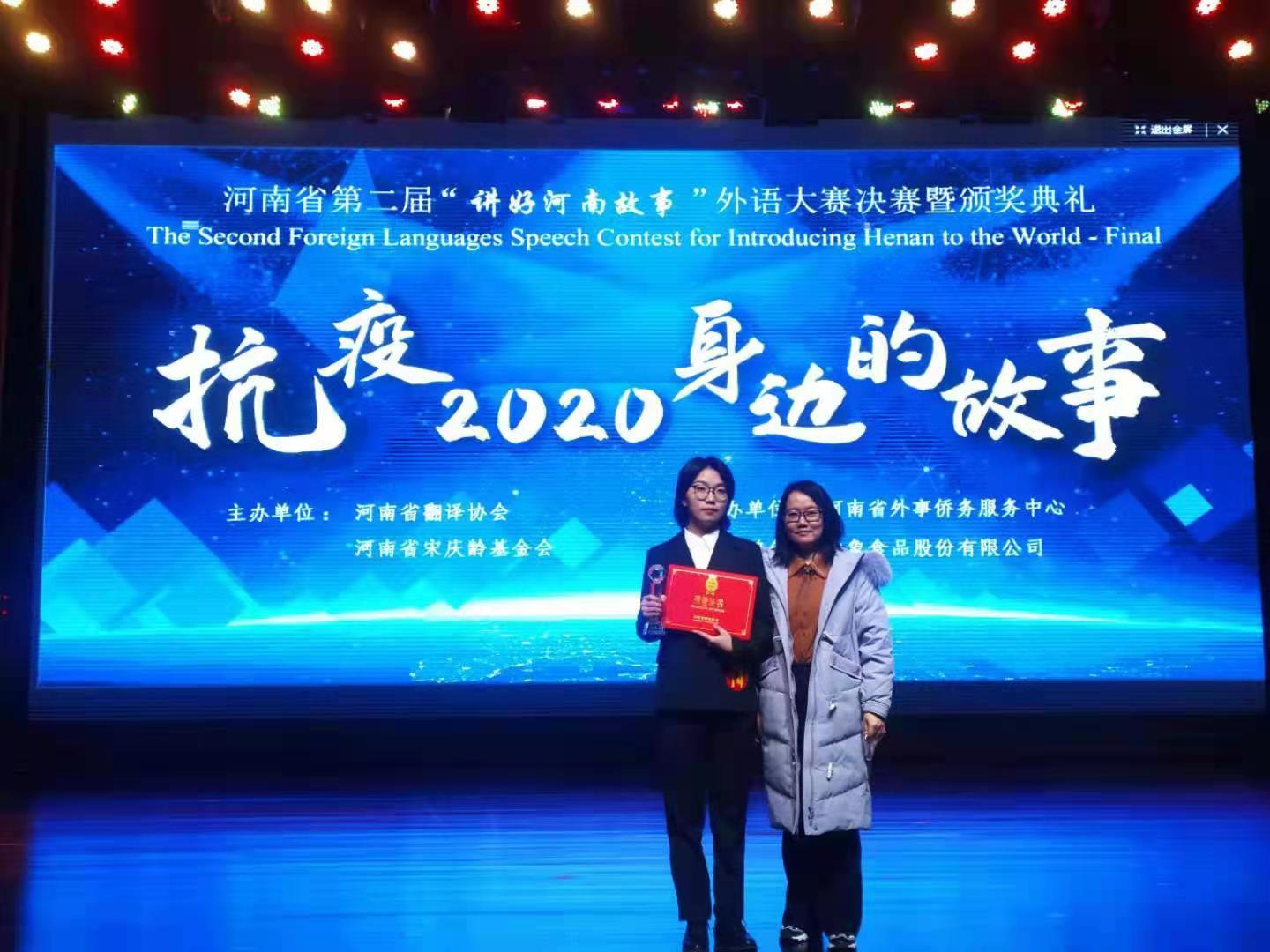 河南省第二届“讲好河南故事”外语大赛以“抗疫2020身边的故事”为主题,旨在贯彻落实习近平总书记关于“推进国际传播能力建设,讲好中国故事,展现真实、立体、全面的中国,提高国家文化软实力”的讲话精神,展现中原风采,传递河南声音。beat365在线平台官网学生在此次比赛中取得佳绩,7名学生从55所高校2437名初赛选手中脱颖而出进入复赛,外国语学院商务英语专业学生雒华宁闯入决赛荣获三等奖。