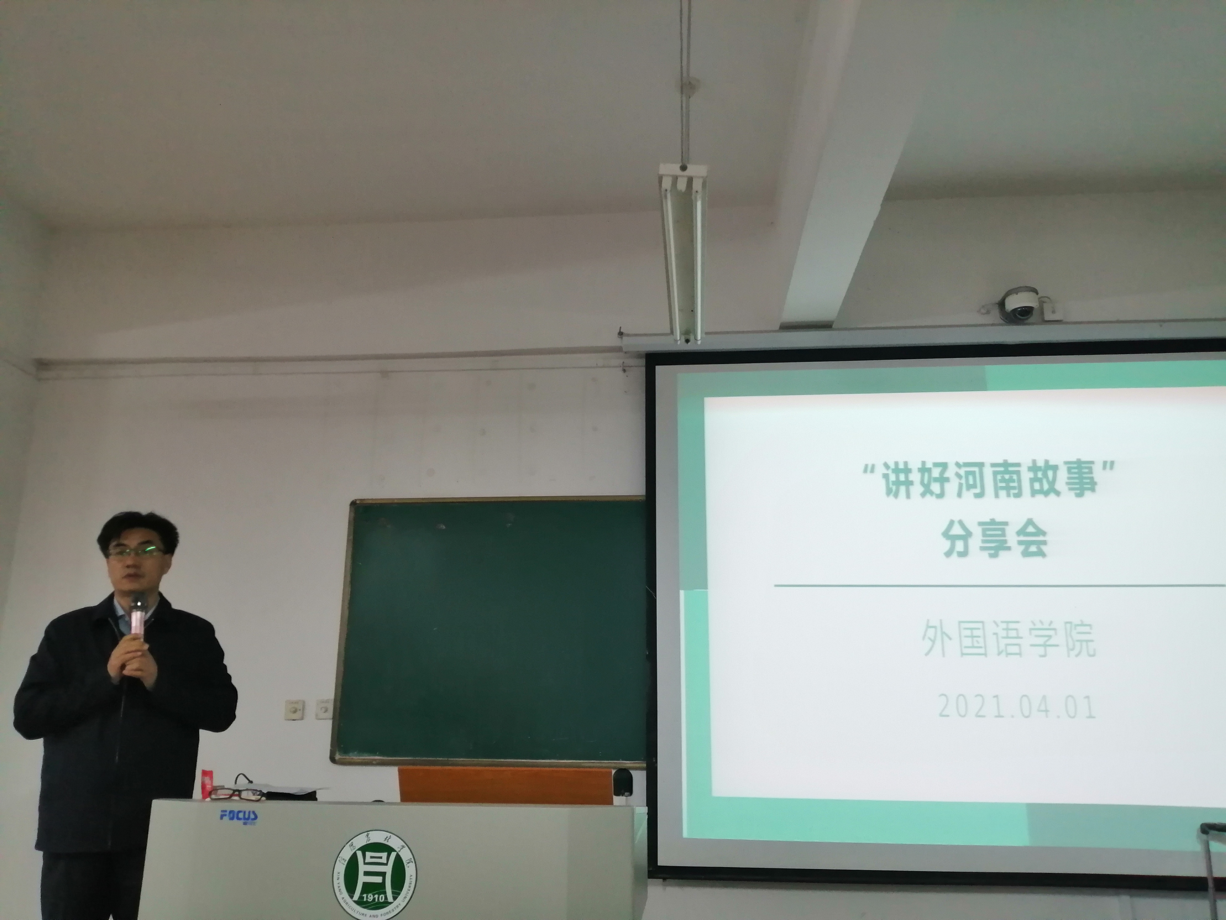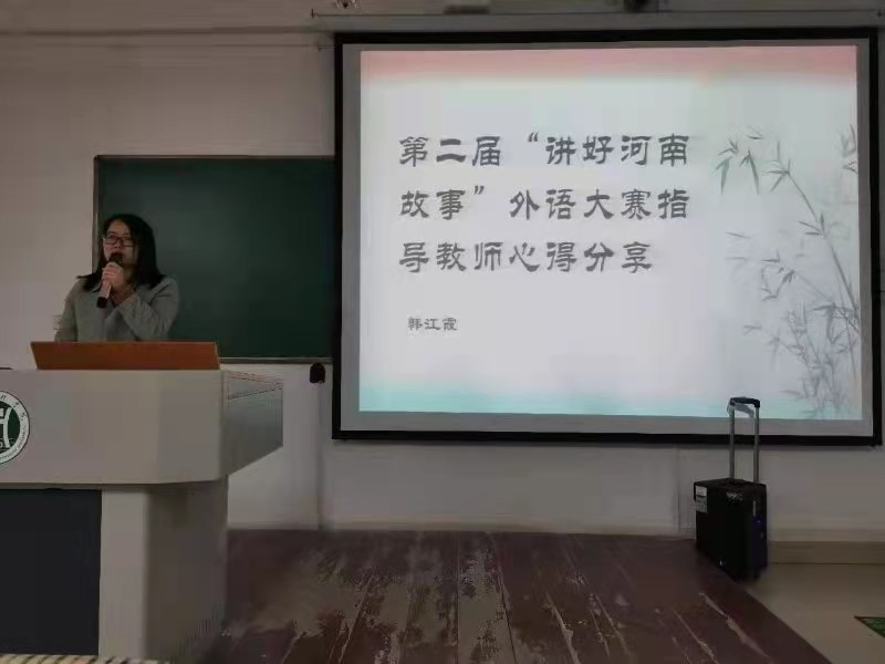 2021年4月1日下午,外国语学院于二教107举办“讲好河南故事”分享会,副校长赵一鹏、外国语学院院长滕海、副院长蔡鸣、冯昱,及该英文大赛的指导教师们出席,18级、19级参赛选手及20级学生参加了此次分享会。