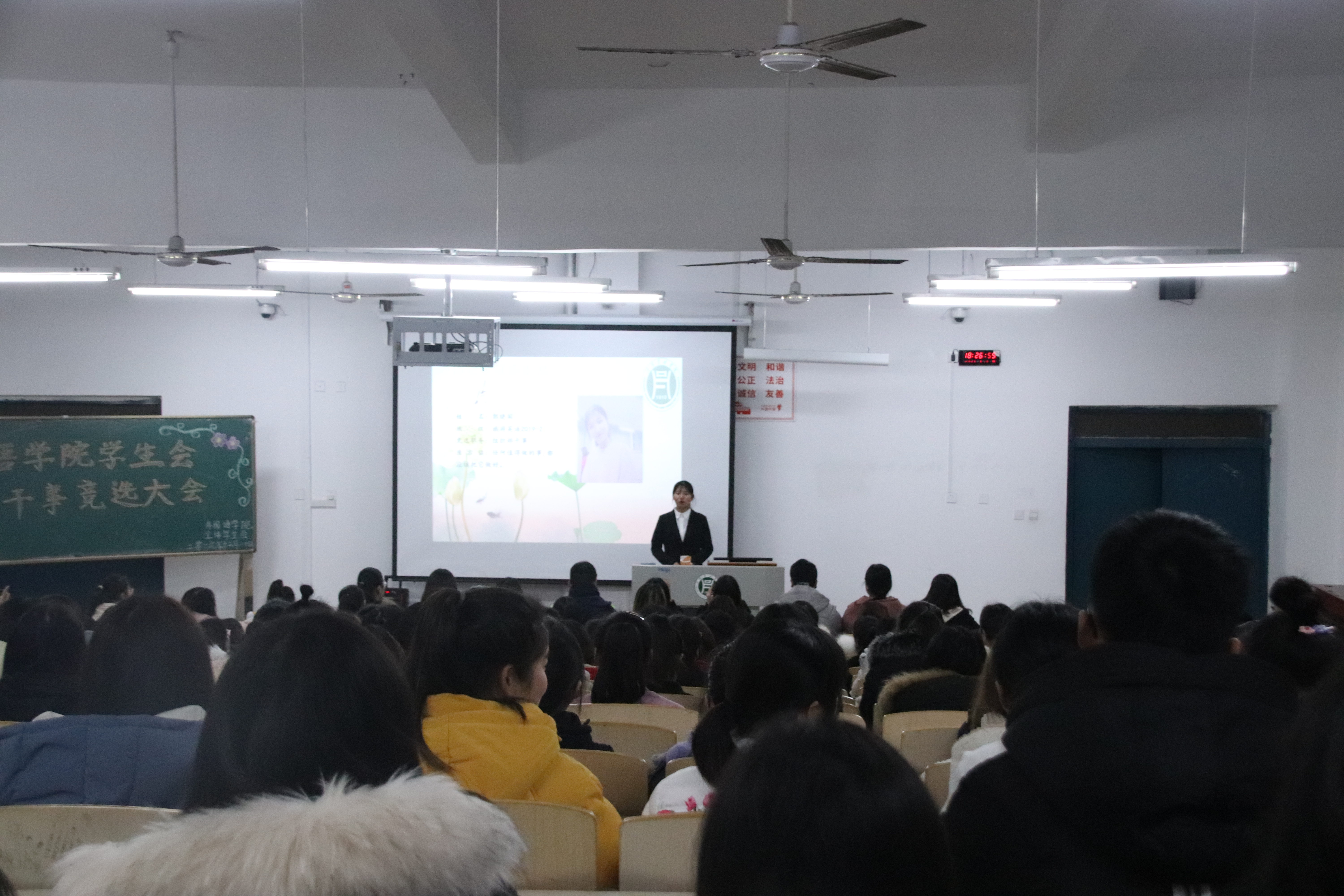 本次干事竞选大会的成功举办,不仅提高了学生会成员工作的积极性,而且为学生干部队伍注入了新的生命力。我院学生会成员将秉承着“严以律己,宽以待人”的原则,为同学们提供更加周到完善的服务,为我院未来的学生工作的建设发展添砖加瓦。(外国语学院)