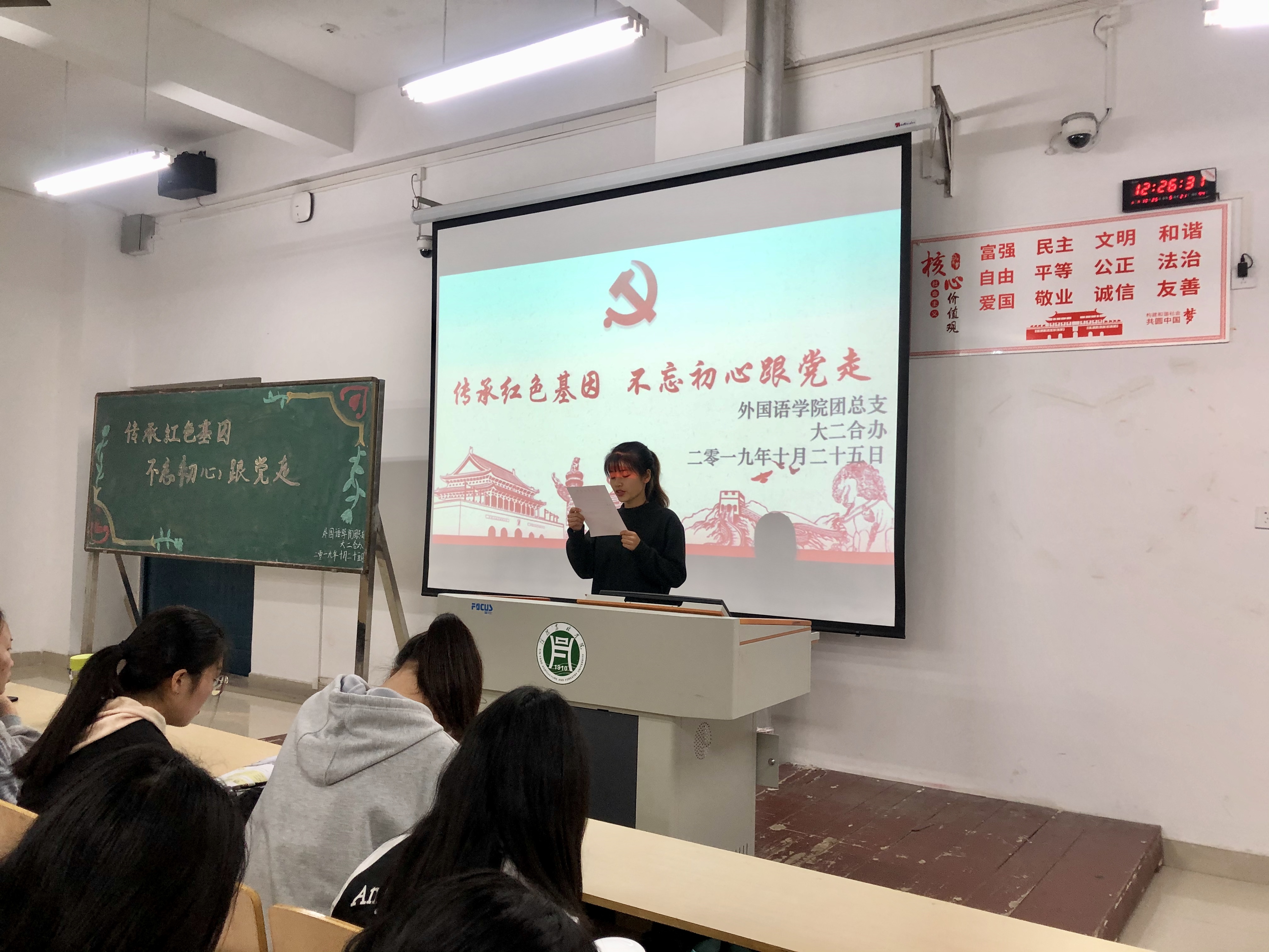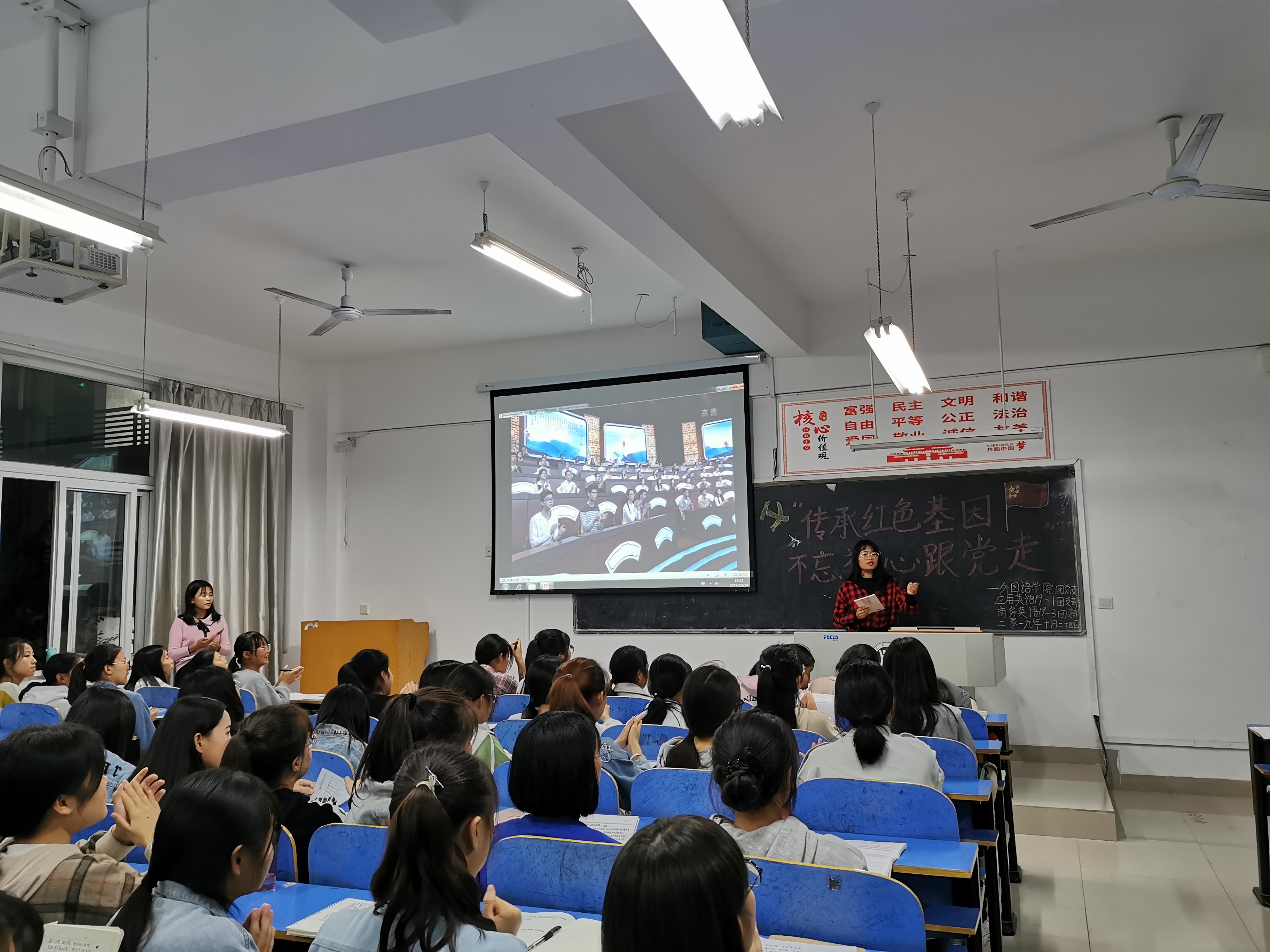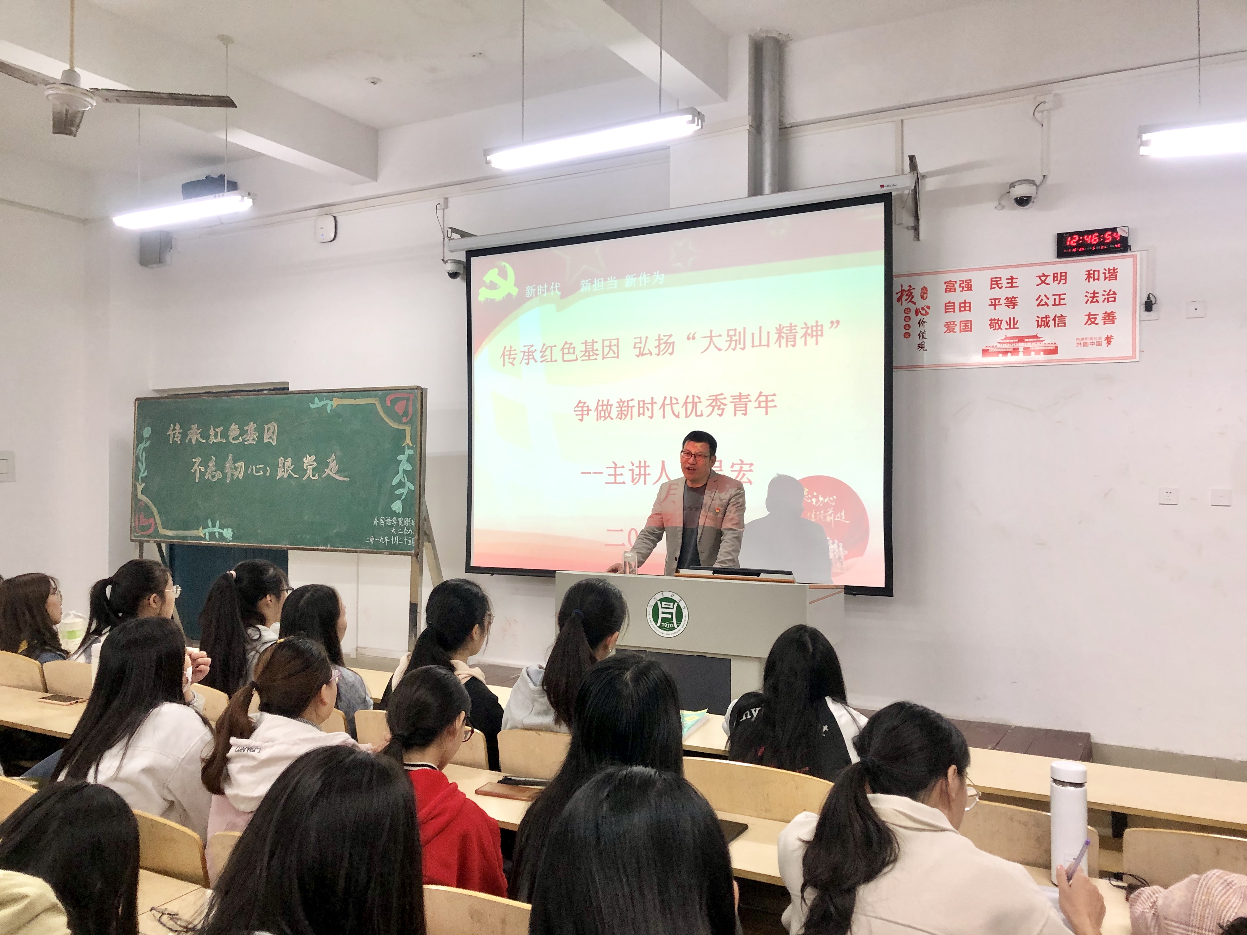 为深入学习贯彻习近平新时代中国特色社会主义思想,传承红色基因,牢记初心使命,弘扬大别山红色革命精神,学习革命先烈崇高品格。10月25日中午,外国语学院于二教306开展以“传承红色基因,不忘初心跟党走”的主题团日活动。本次团日活动由我院组织员、学工组组长吴宏主讲,2018级全体同学参加。