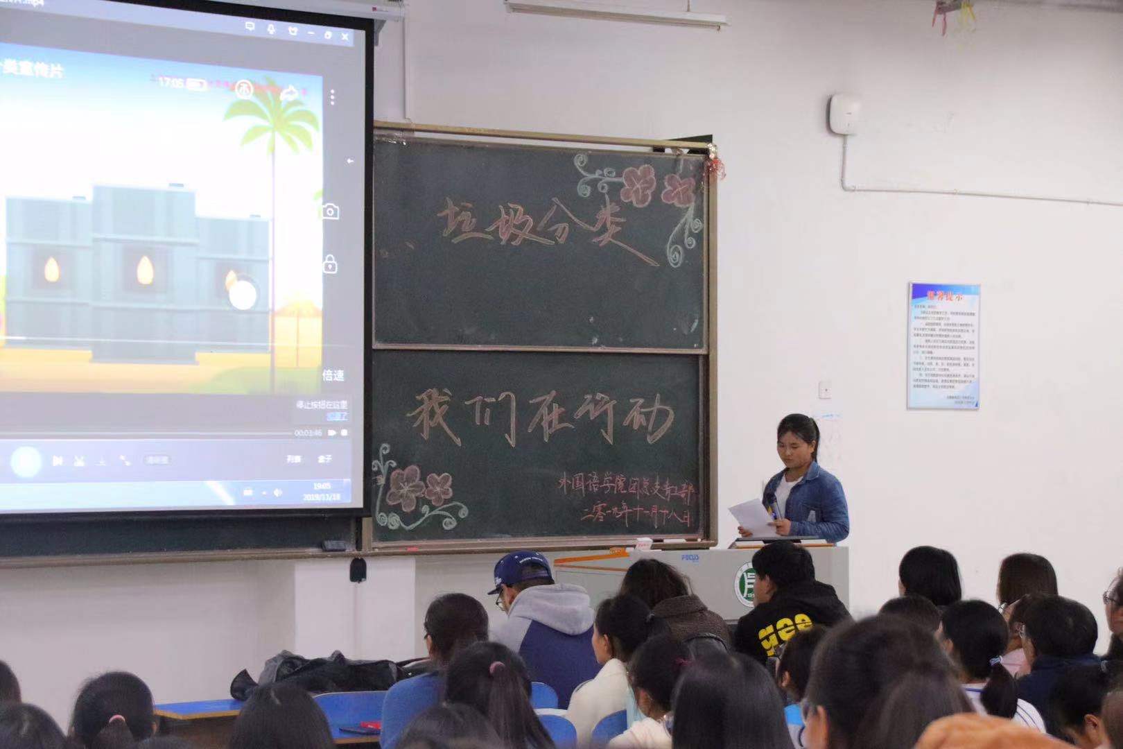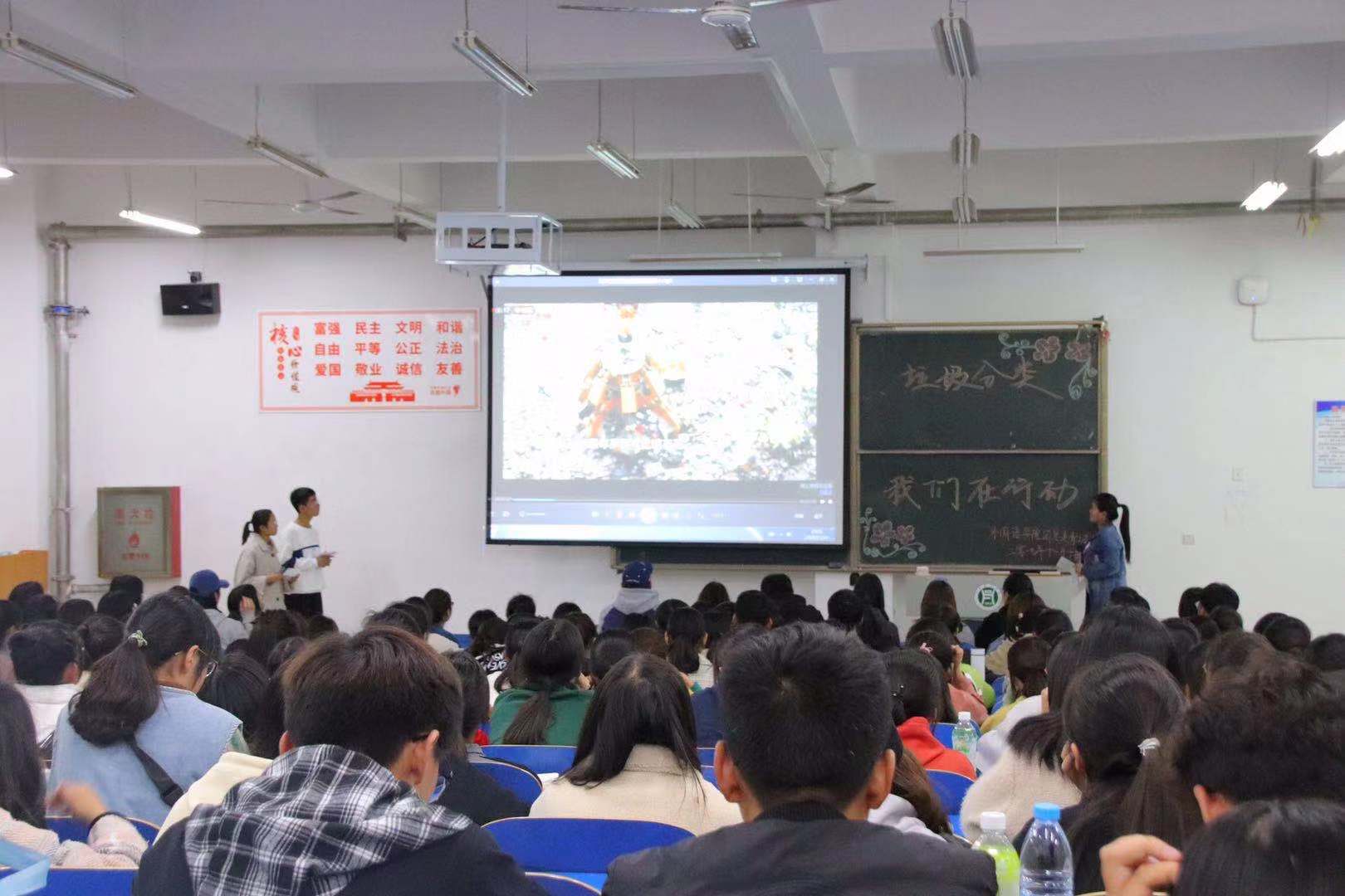 为深入开展垃圾分类宣传工作,增强同学们的环保意识,11月18日晚,外国语学院于一教E201开展了“垃圾分类,我们在行动”主题活动,17级、18级学生代表及全体大一新生参加。