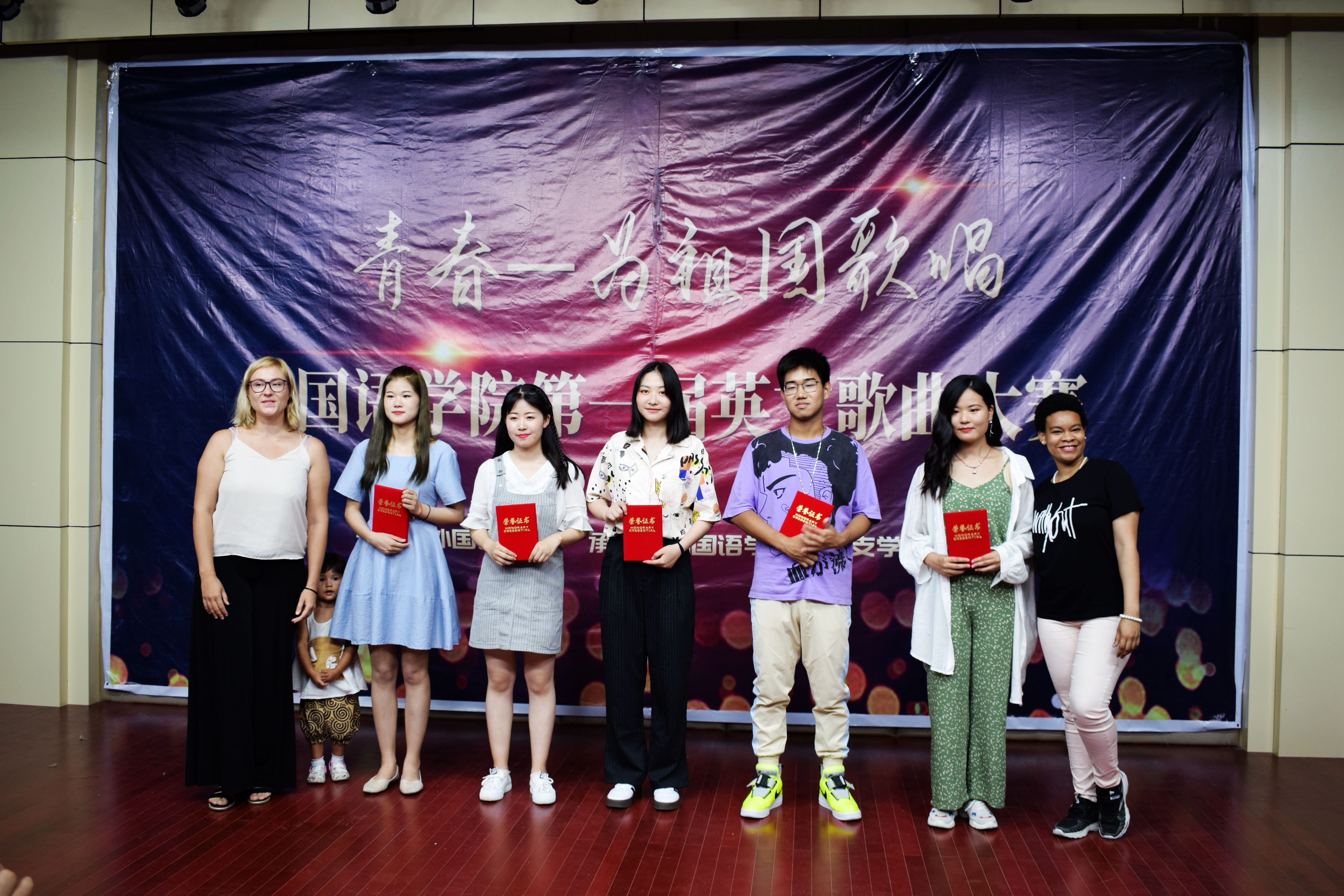 614日晚,星河灿烂,流光溢彩璀璨灯火,欢乐海洋。为了丰富校园文化生活,提高学生主动学习英语的积极性,为学生提供展示自己才华的舞台外国语学院于一教E101举办青春——为祖国歌唱第一届英语歌大赛我院组织员吴宏、团总支书记范琼琼、教师代表张霞、闫达、蒋博如、辅导员朱俊梵、外教AnnaKey 以及全体大一同学参加了本次活动。