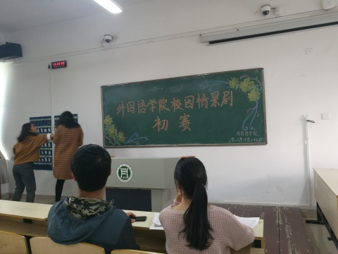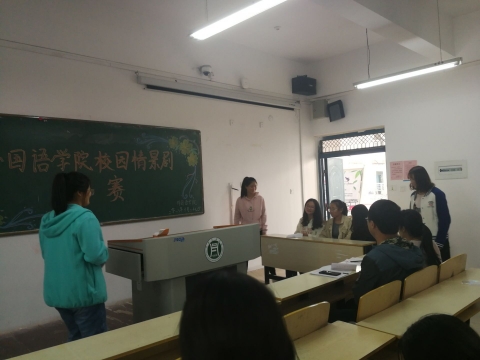 金秋的校园,又迎来了一批批满怀期待与梦想的2018届新生。2018年10月27日下午4点,外国语学院于二教202举行了“不负韶华 出彩青春”校园心理情景剧的初赛。其目的是为了积极引导大一新生让他们能更好、更快的融入到全新的大学生活里面来。担任本次初赛的评委老师有2016级辅导员范琼琼老师,2017级辅导员朱俊梵老师以及外国语学院心理部三名干事。