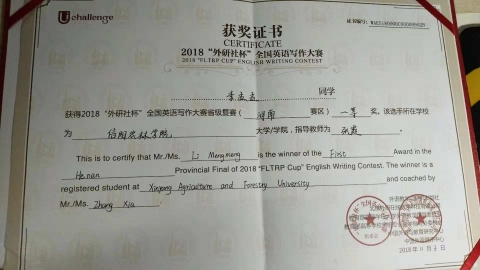 近日,从2018“外研社·国才杯”全国英语阅读、写作、演讲比赛组委会传来喜讯,我院多名同学参赛,在外国语学院领导的关心下,在外国语学院老师的精心指导下,他们凭借扎实的基本功和较强的思辨能力在比赛中发挥出色、表现优秀,其中选手李孟孟、徐艳超、宋乐乐分别获写作比赛一等奖、二等奖和三等奖;选手刘国辉和倪风浪获阅读比赛二等奖,张秀锦获阅读比赛三等奖;选手胡先丽、陈世豪获演讲比赛三等奖。