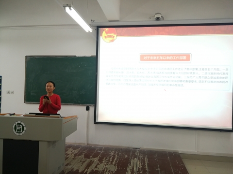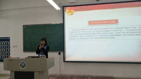 范琼琼老师向学生干部传达了7月2日习近平总书记重要讲话精神,对习近平总书记关于五年来共青团取得的成绩,共青团的基本要求、职责使命,共青团改革的目标责任等等内容进行了系统解读,并通过看视频、提问互动的方法向广大学生传达了习近平总书记对全体团员团干部殷切嘱托,寄予厚望,要求学生干部要认真学习宣传贯彻习近平总书记的重要讲话,全面从严治团,既是一种态度,更要成为一种行动。最后17级团支书沈晨兰、王佳珍同学分别做了本次团课学习发言。
