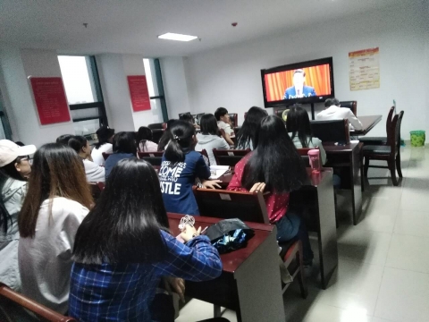 为全面贯彻党的十九大精神,深入学习习近平新时代中国特色社会主义思想,增强广大党员的党性意识和爱国意识,4月27日晚,16、17级入党积极分子在行政楼803共同观看《厉害了,我的国》。